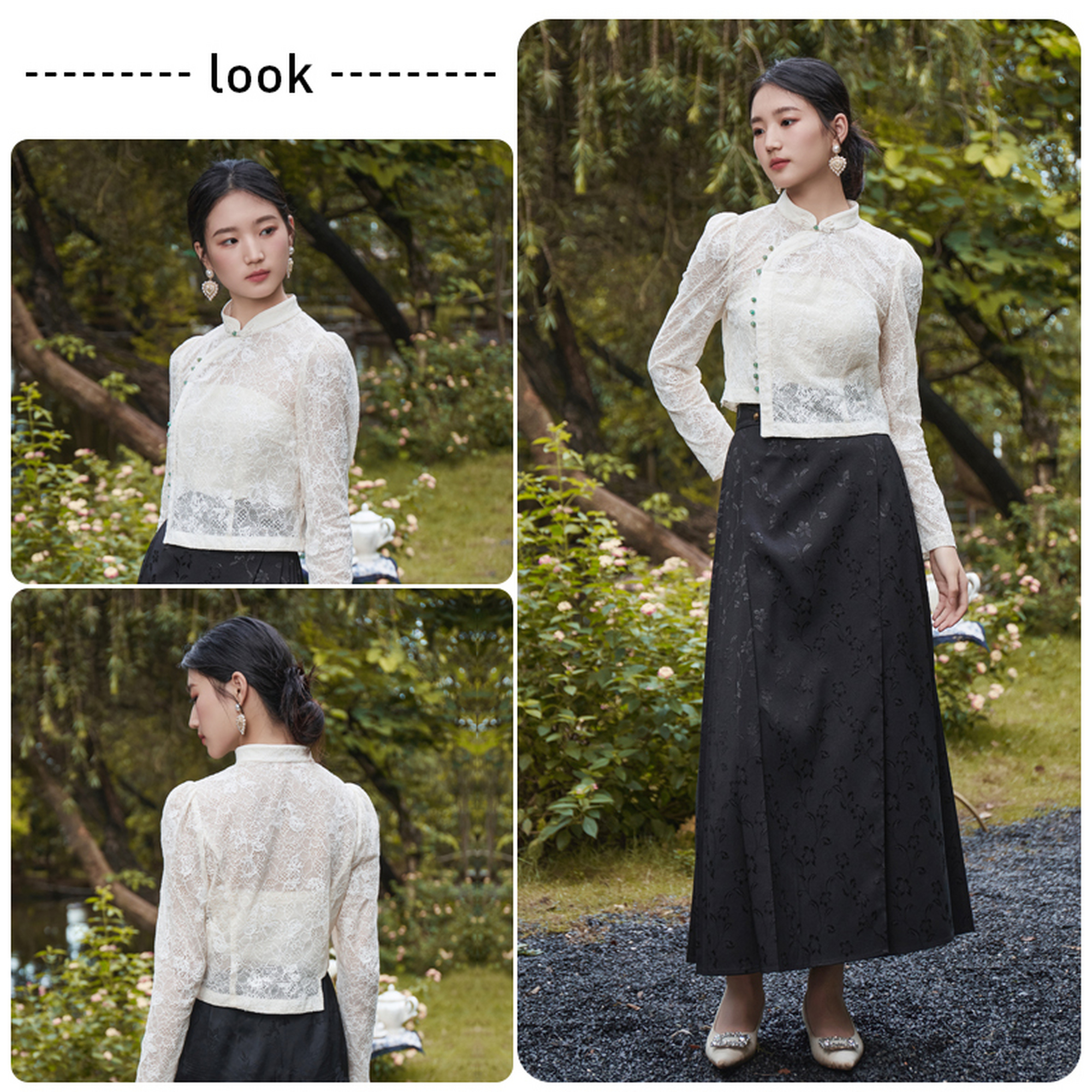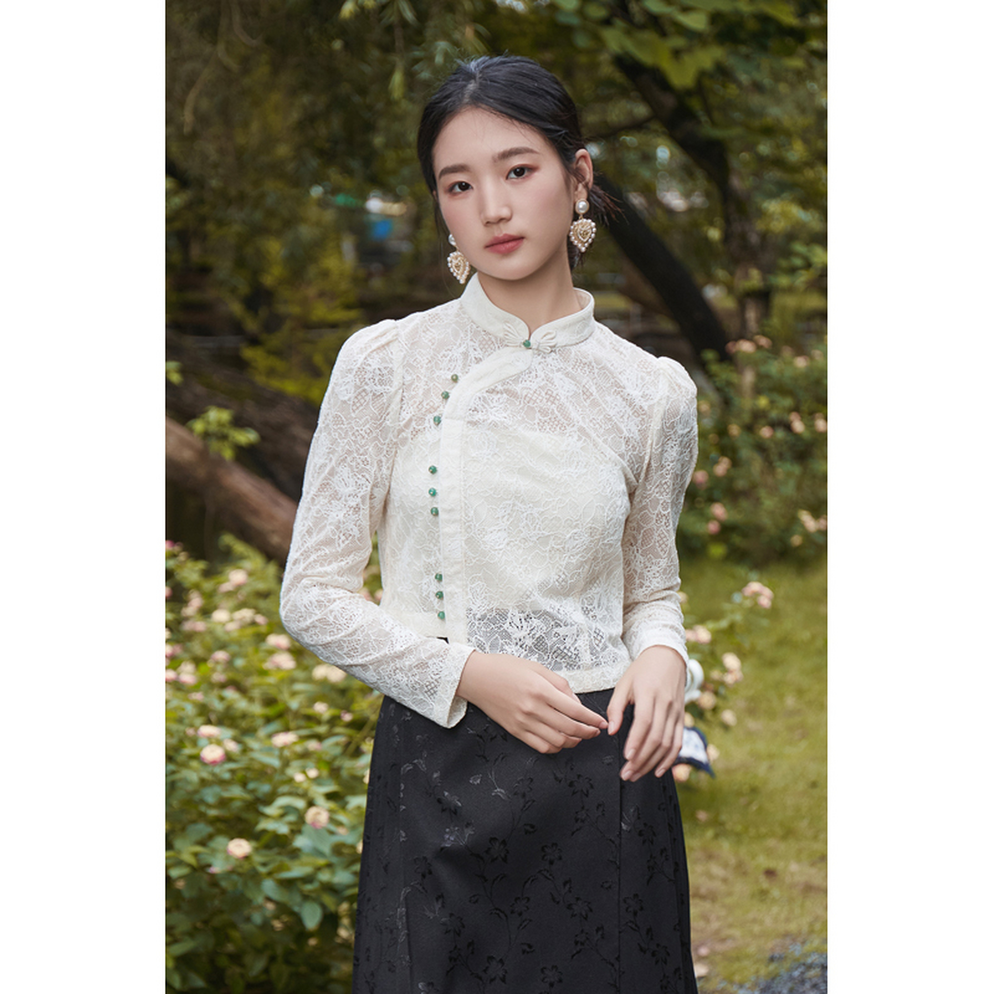 固执2023秋季新款中式立领复古长袖蕾丝衫上衣女装80133SY08398