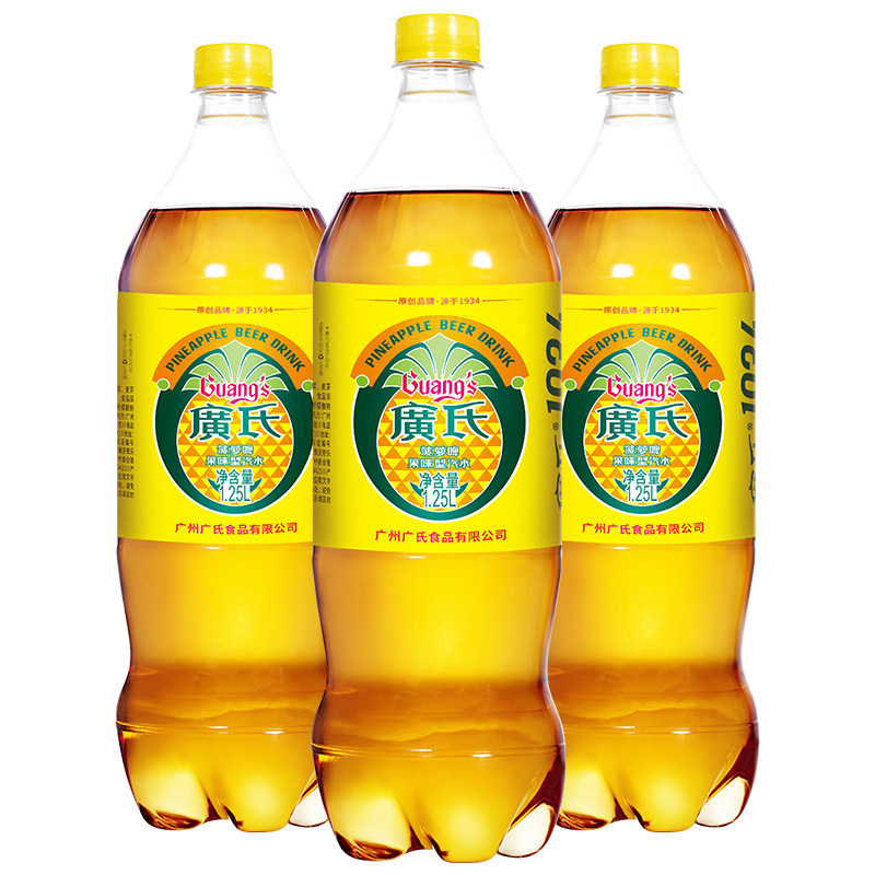 广氏菠萝啤汽水1.25L*3大瓶装 0酒精广式碳酸饮料 果味汽水上新