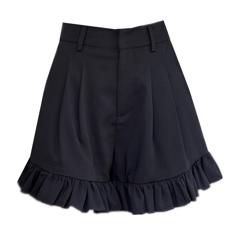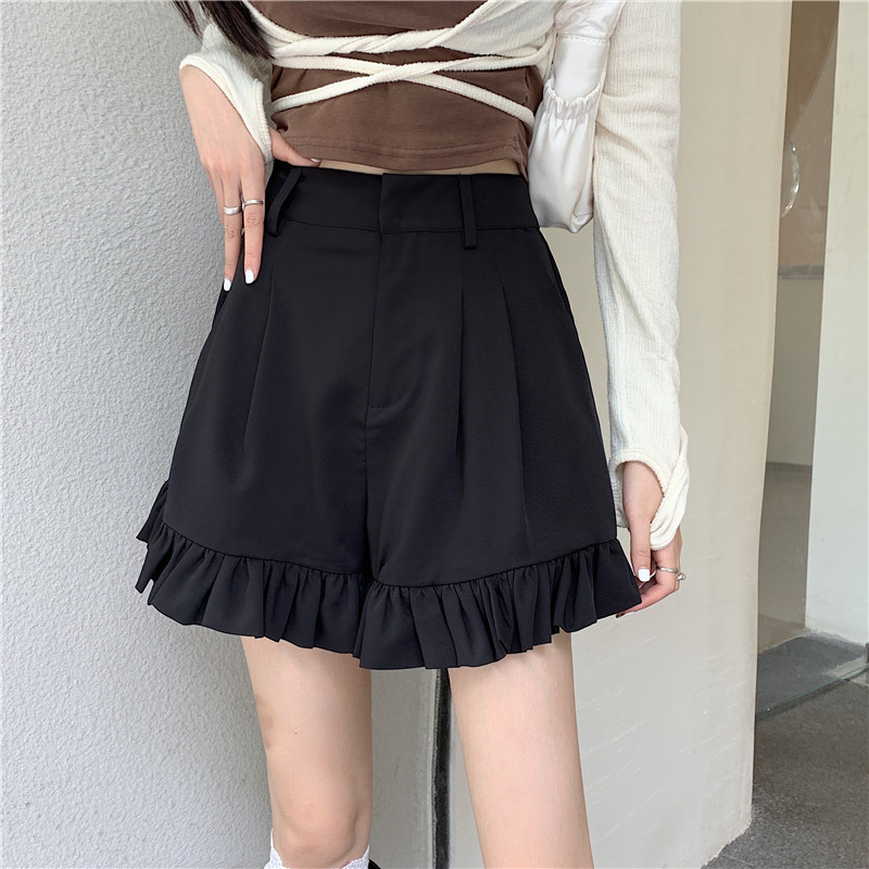 法式木耳边西装短裤女夏季大码高腰宽松阔腿裤百搭黑色a字休闲裤