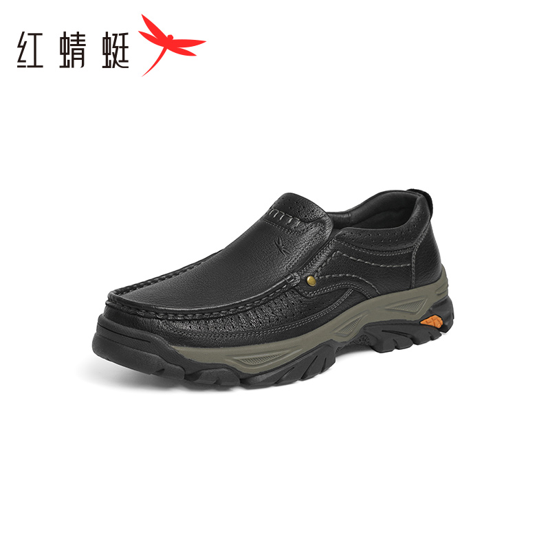 红蜻蜓休闲皮鞋新款一脚蹬男鞋真皮高端鞋子商务软底舒适工装鞋男