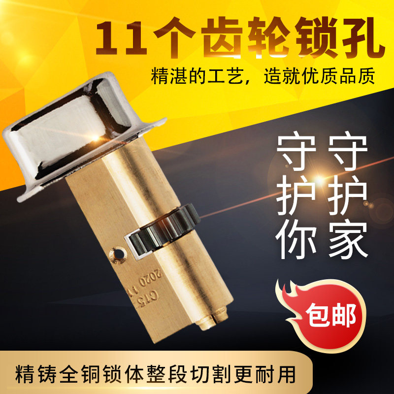 春天盼盼老式防盗门锁芯 11齿月牙带帽子全铜锁芯 替换保德安9型