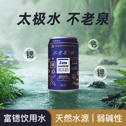 太极不老泉天然小分子活泉富锶弱碱性水饮用水整箱310ml/罐装包邮
