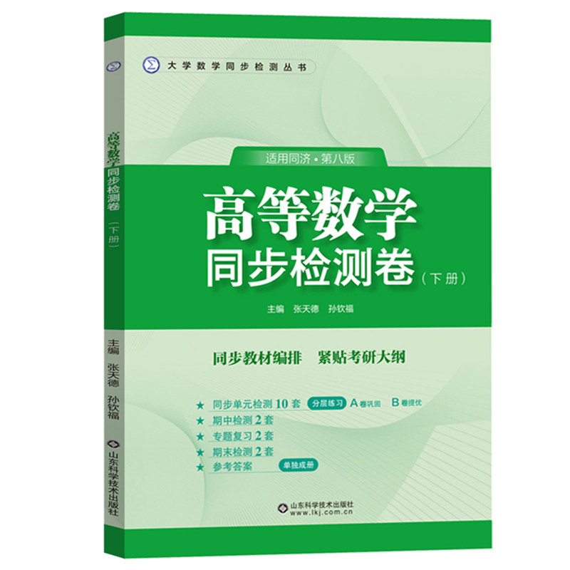 高等数学同步检测卷 适用同济第八版 张天德 高等数学同济八版同济大学第8版高数教材同步单元期中期末检测试题习题集专题复习辅导