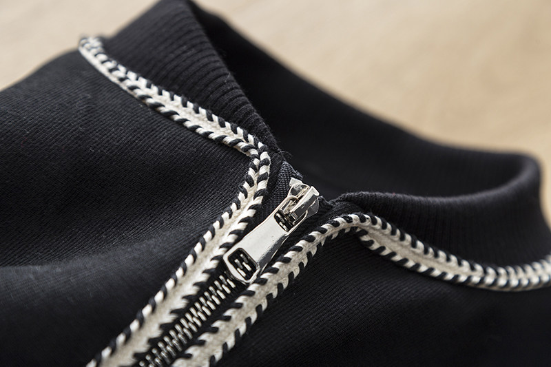 撞色金线麦穗纹编织外套女棒球服夹克宽松休闲百搭黑色拉链短上衣