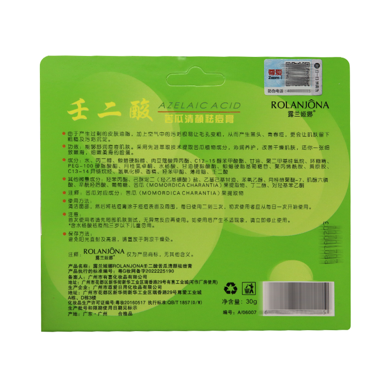 露兰姬娜壬二酸苦瓜清颜祛痘膏 改善痘痘祛痘舒润痘痘肌肤 30g