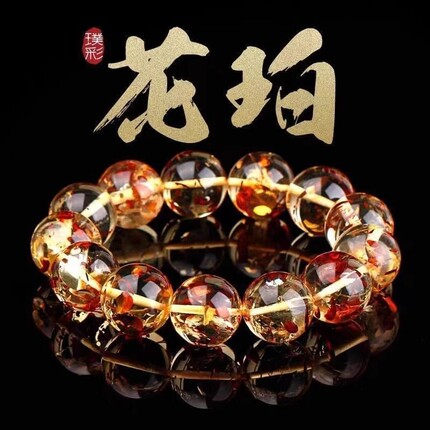 仿琥珀蜜蜡花珀手链叶珀圆珠手串单圈男女款手饰