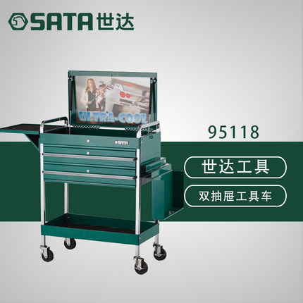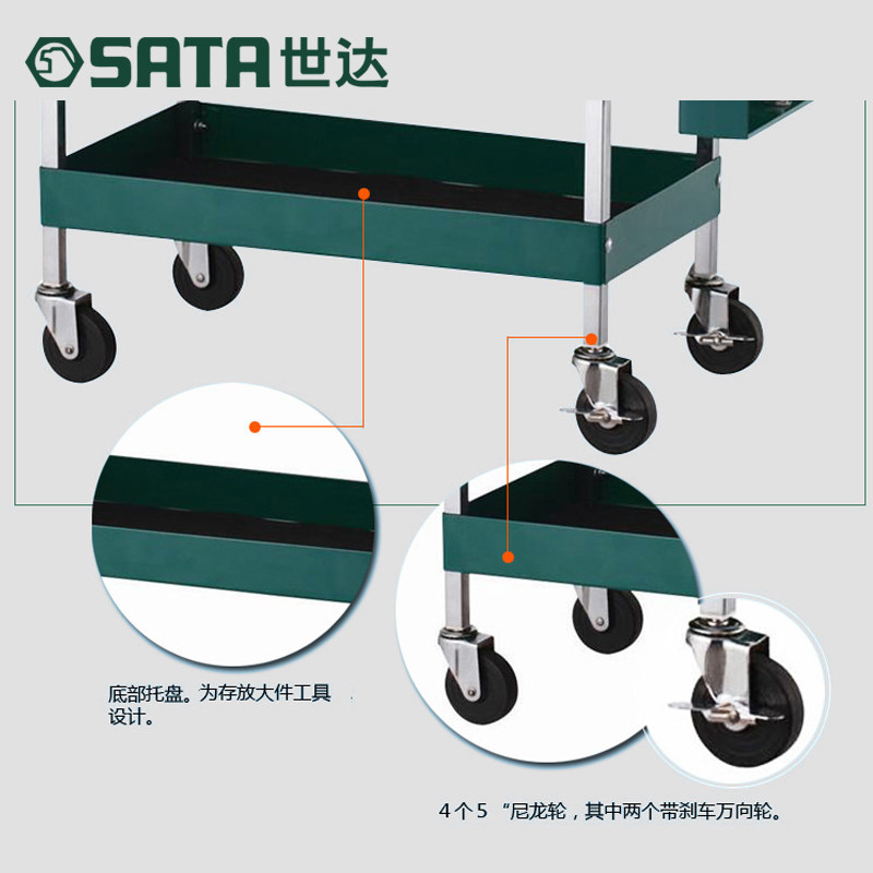 世达五金抽屉推车三层多功能工具架子层维修手推移动零件车 95118
