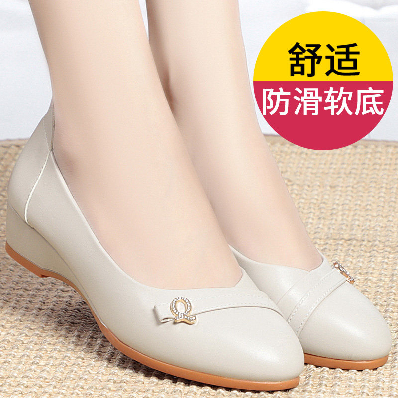 妈妈鞋真皮软底舒适女鞋秋季单鞋夏季瓢鞋中老年平底坡跟防滑皮鞋