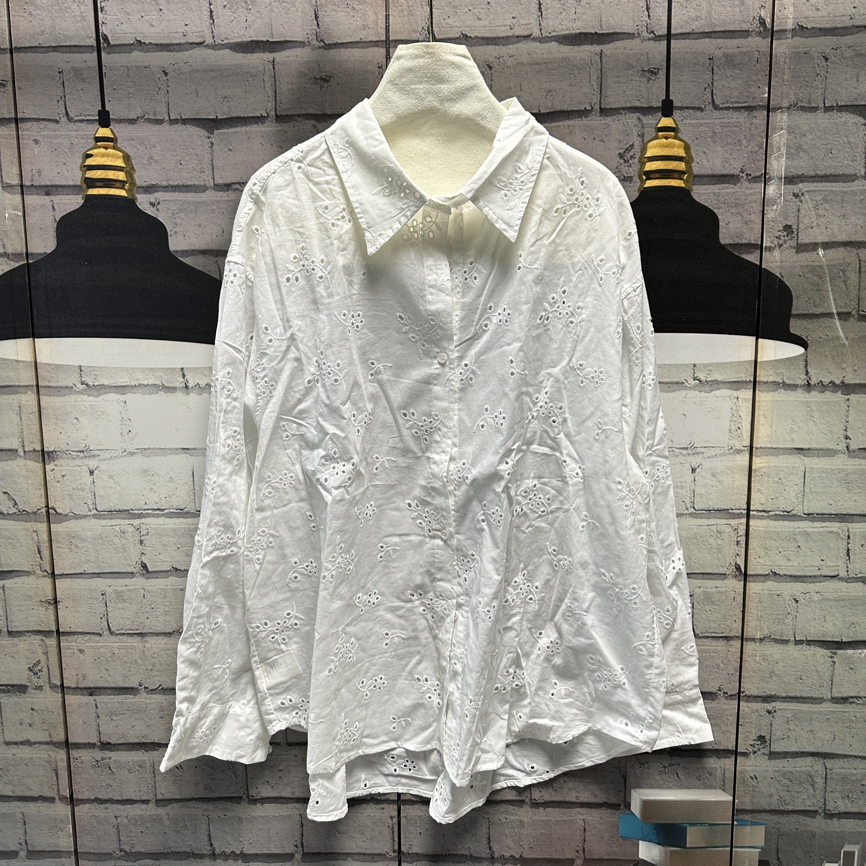 宽松大码刺绣镂空春夏季女装长袖中长衬衫女C642