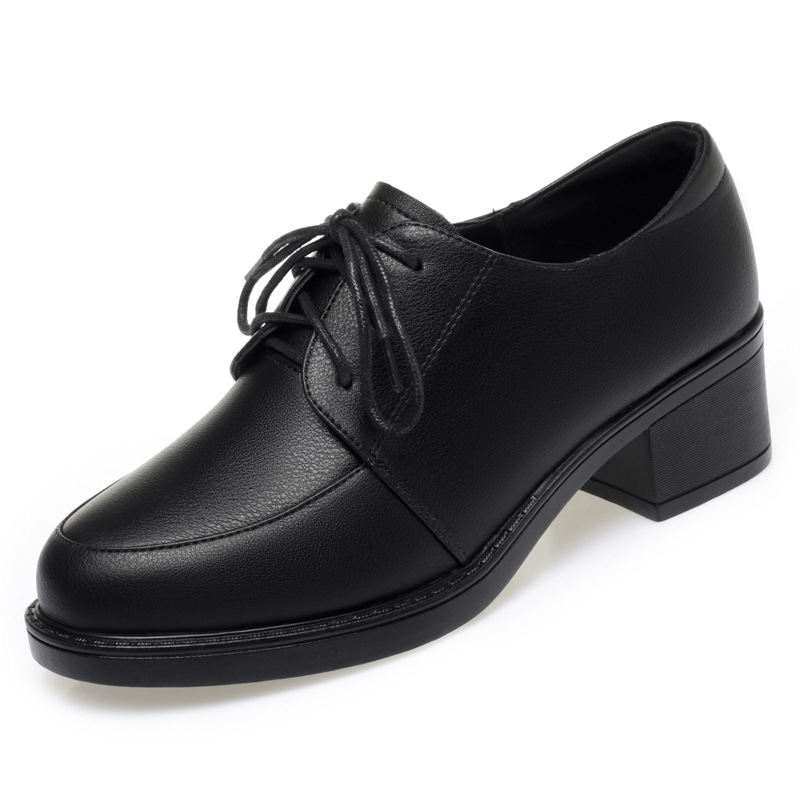 系带皮鞋女2025春季新款软皮女鞋软底通勤单鞋妈妈鞋子黑色不累脚
