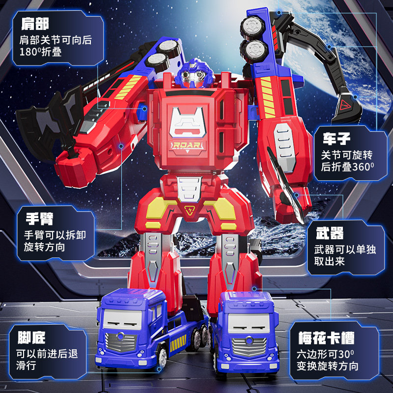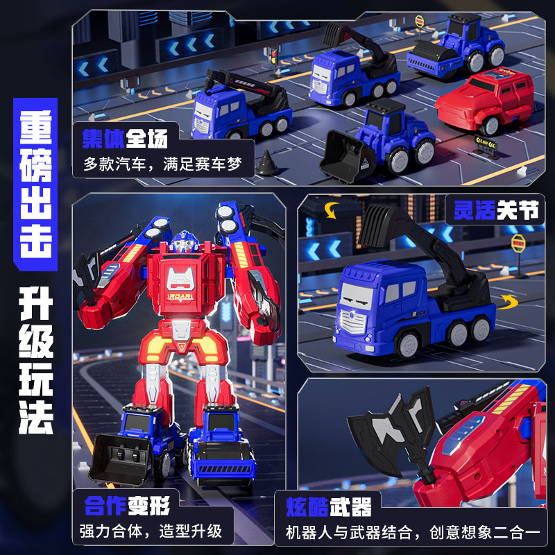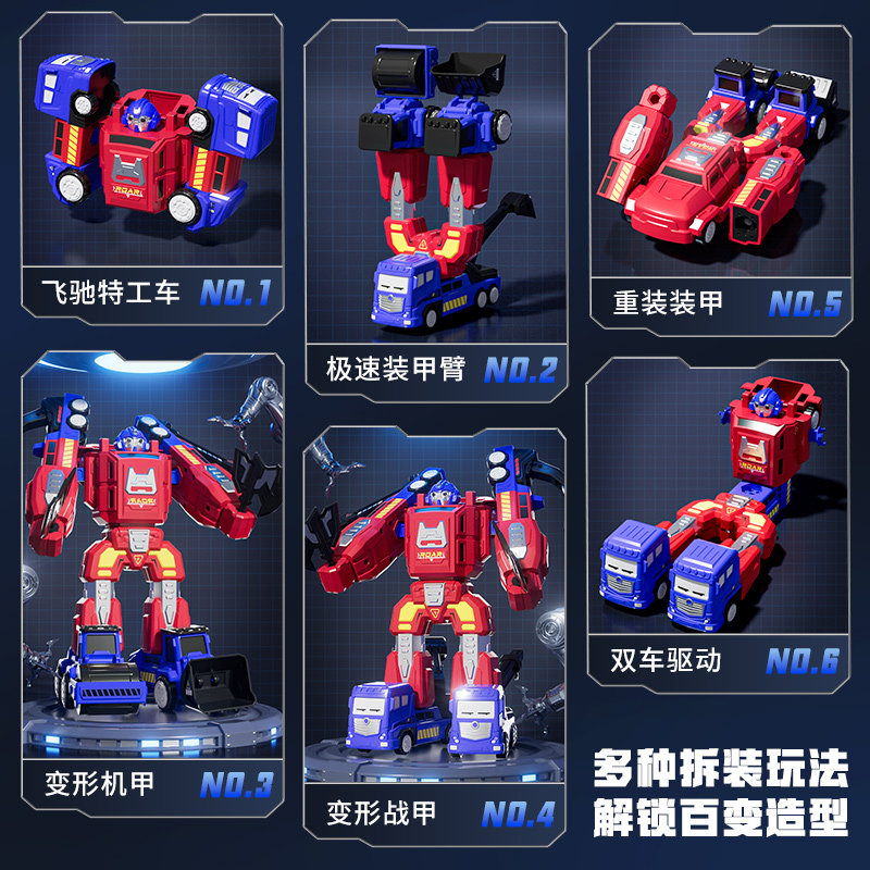 纽奇儿童机器人玩具磁力百变形金刚小汽车合体旋转关节擎天柱六一