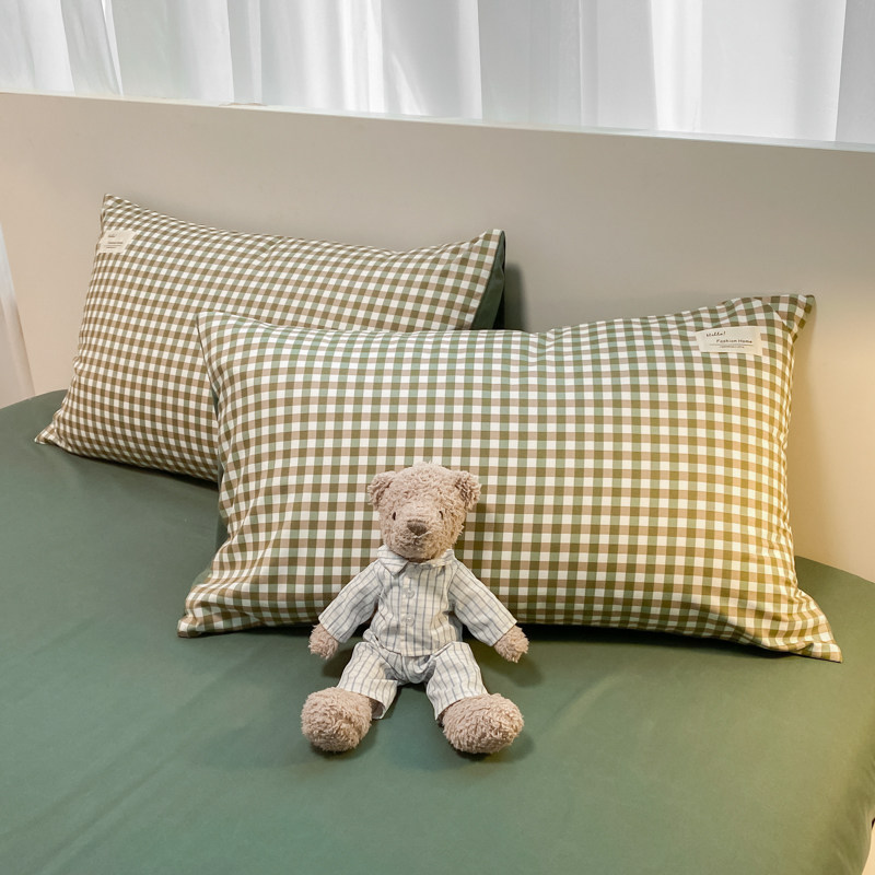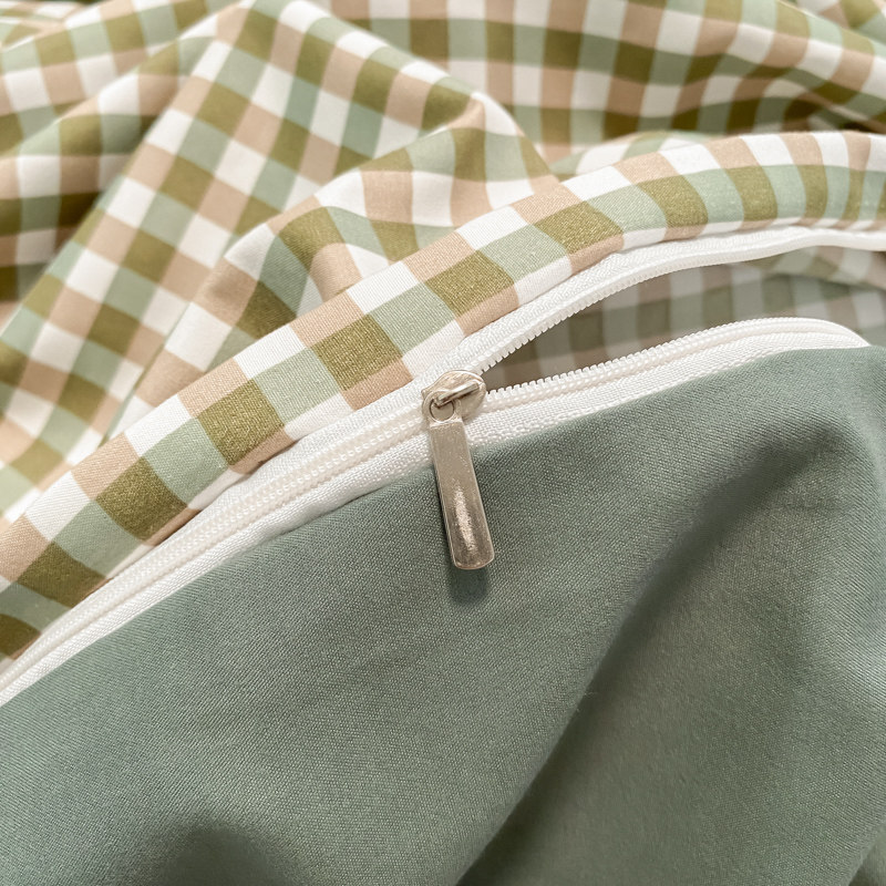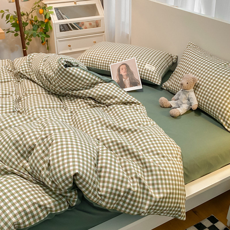 ins北欧简约磨毛复古格子水洗棉床上四件套非全棉纯棉被套三件套