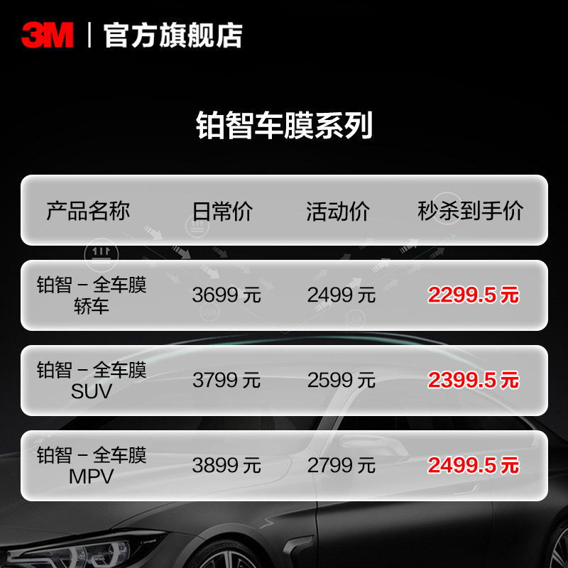 3M汽车贴膜官方正品铂智车窗玻璃膜全车膜防爆隔热抗紫外线太阳膜