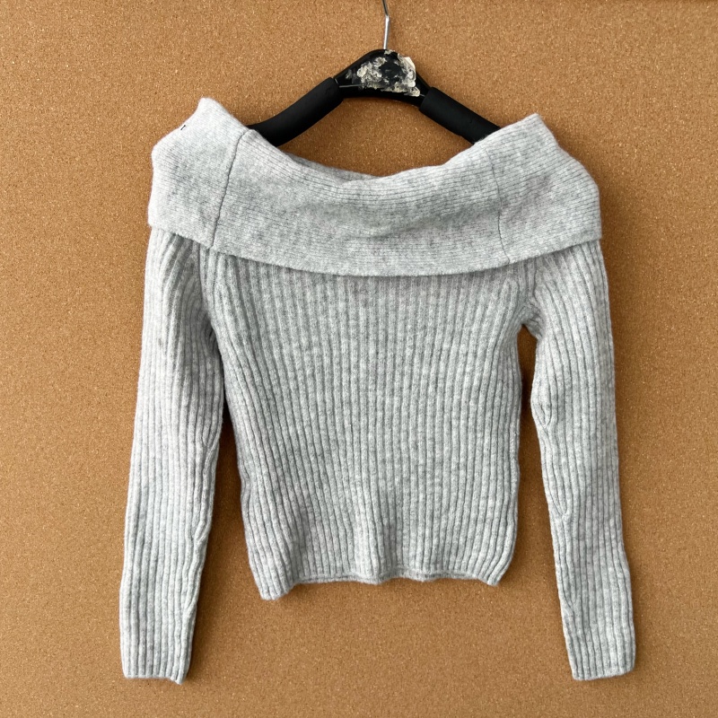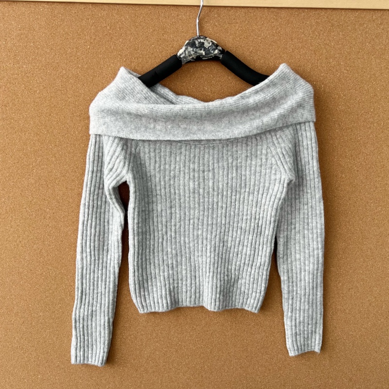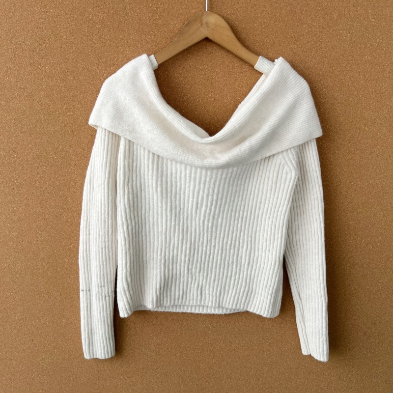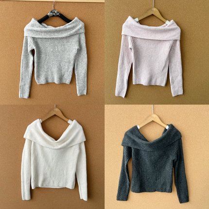 2Q1-39秋冬季一字肩女士日系纯色针织上衣大翻领设计打底衫Y25-10