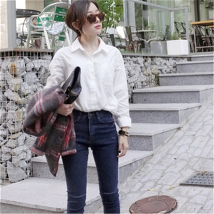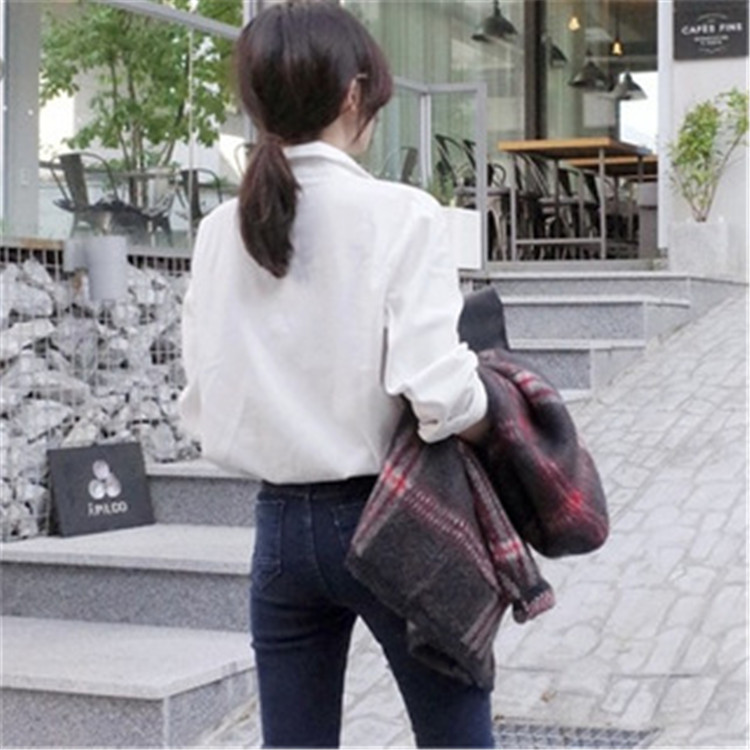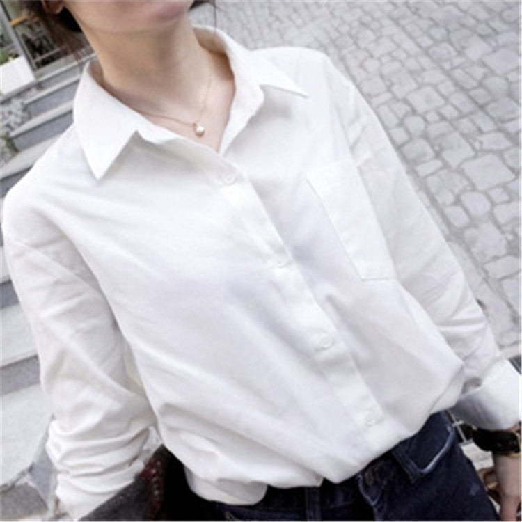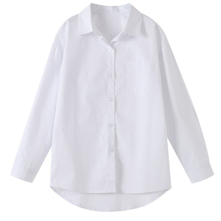 C702-OL职业范修身显瘦大码女装2020白色棉学院风长袖打底衬衫