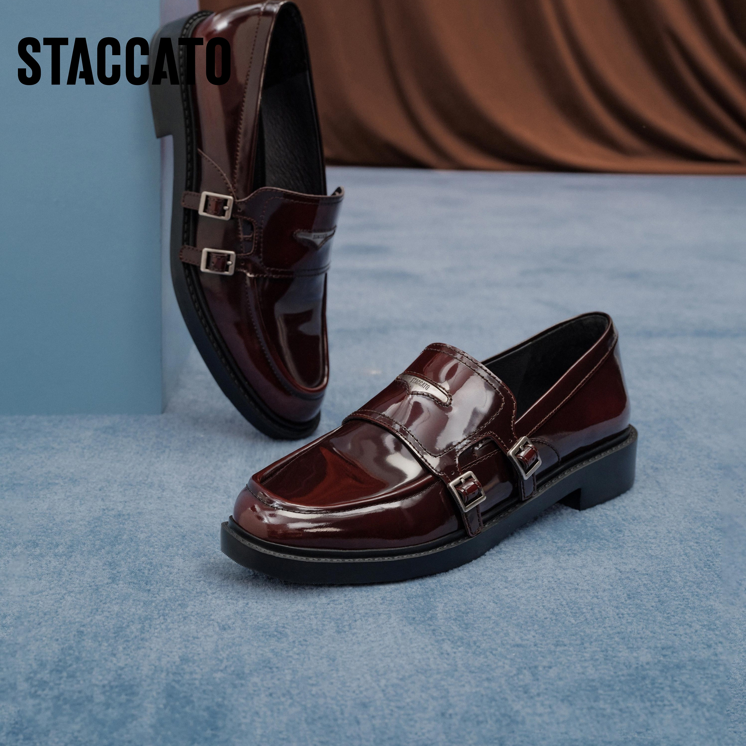 思加图圆舞海鸥英伦风粗跟乐福鞋