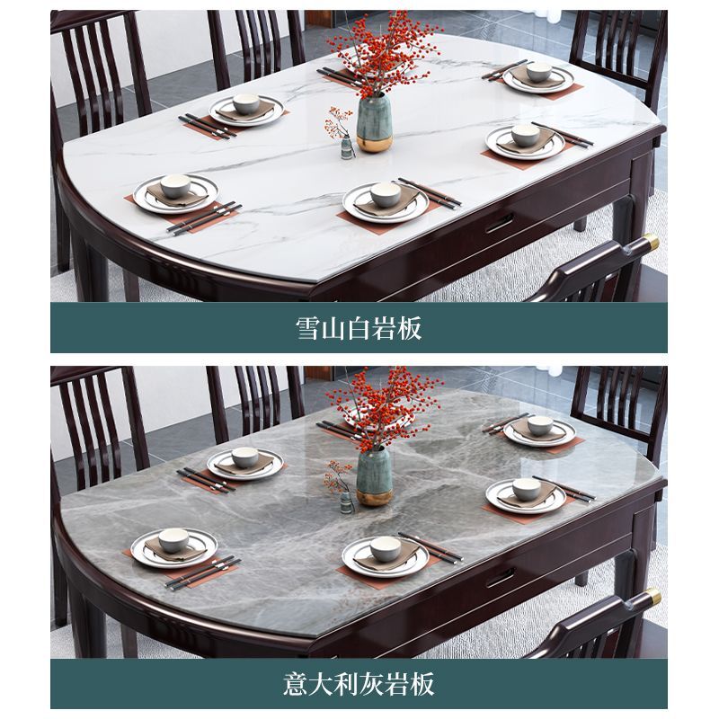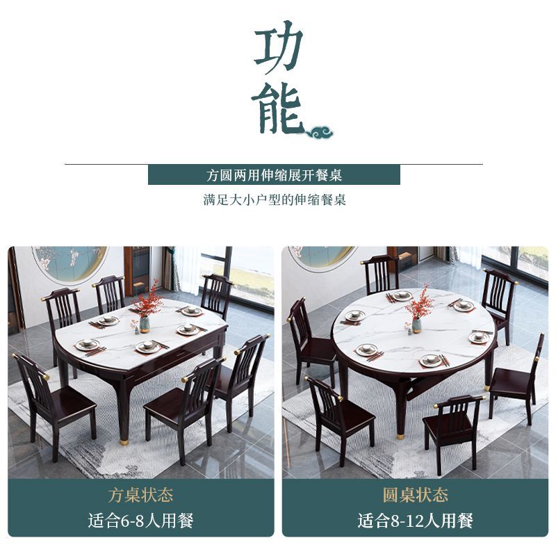 鲁菲特新中式餐桌椅组合加厚岩板可伸缩折叠方圆两用家用饭桌