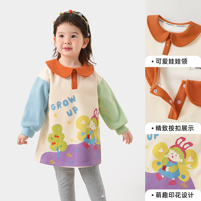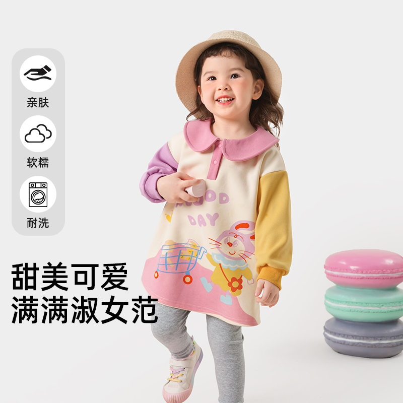 咔咔熊猫女童连衣裙春秋婴儿衣服长袖卫衣裙春装女宝宝淑女裙子