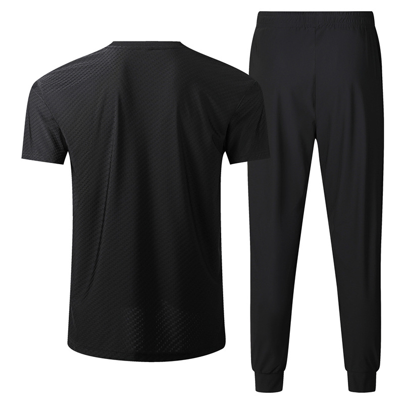 夏季冰丝跑步运动套装新款男士休闲加肥加大码短袖T恤男装潮牌薄