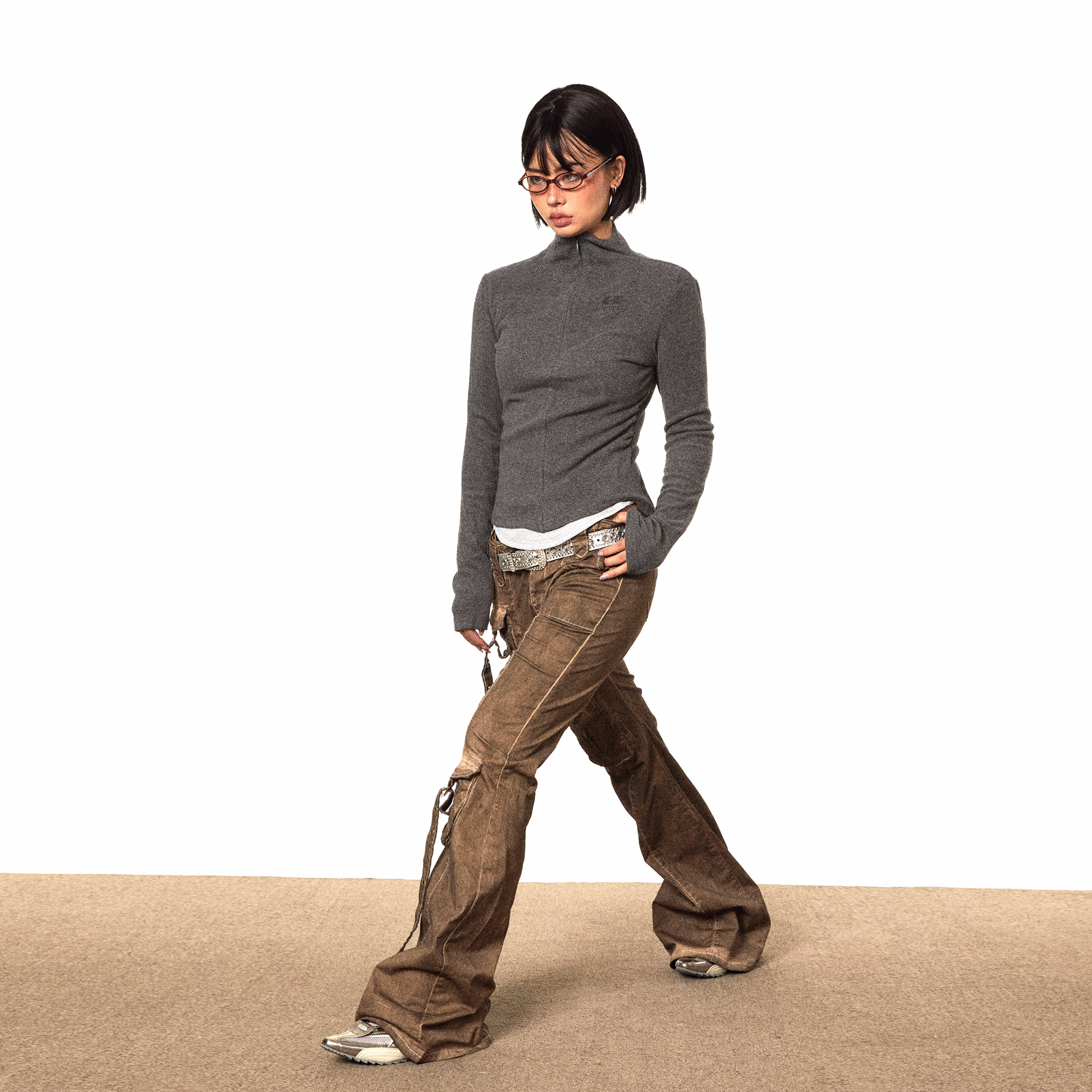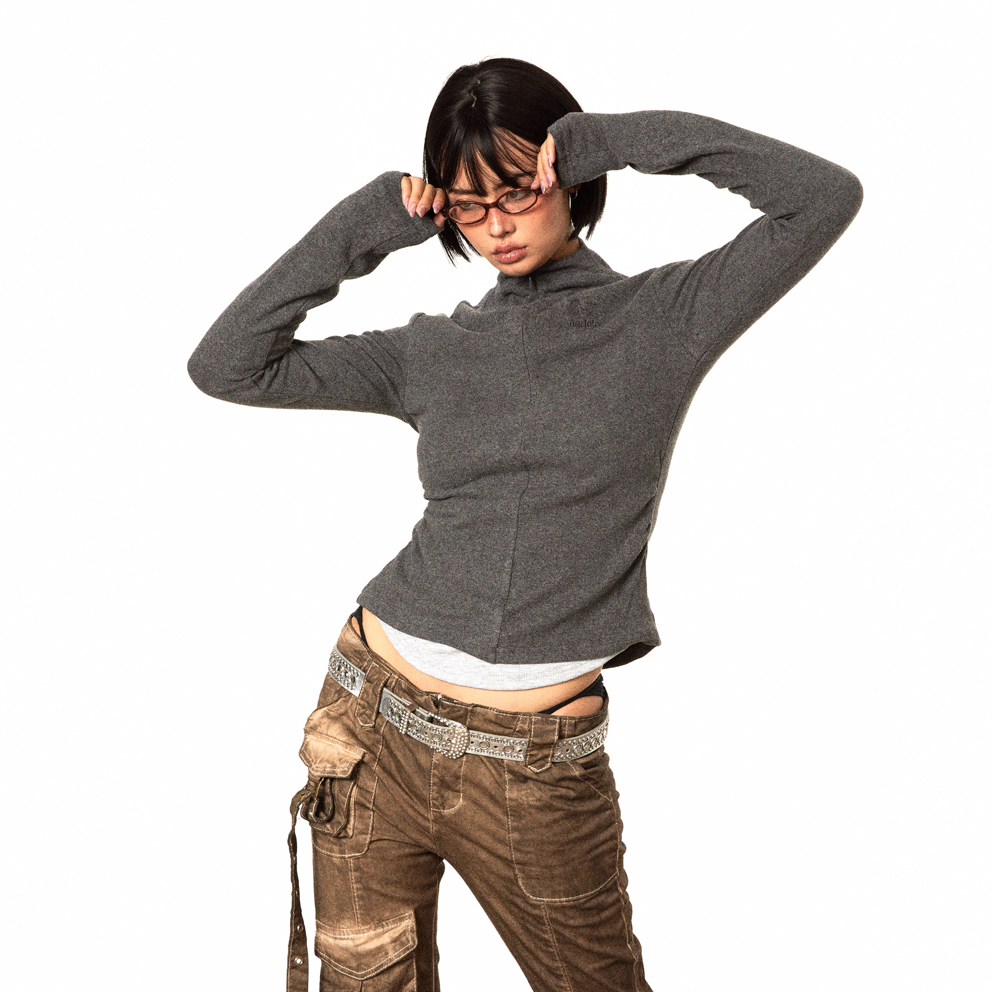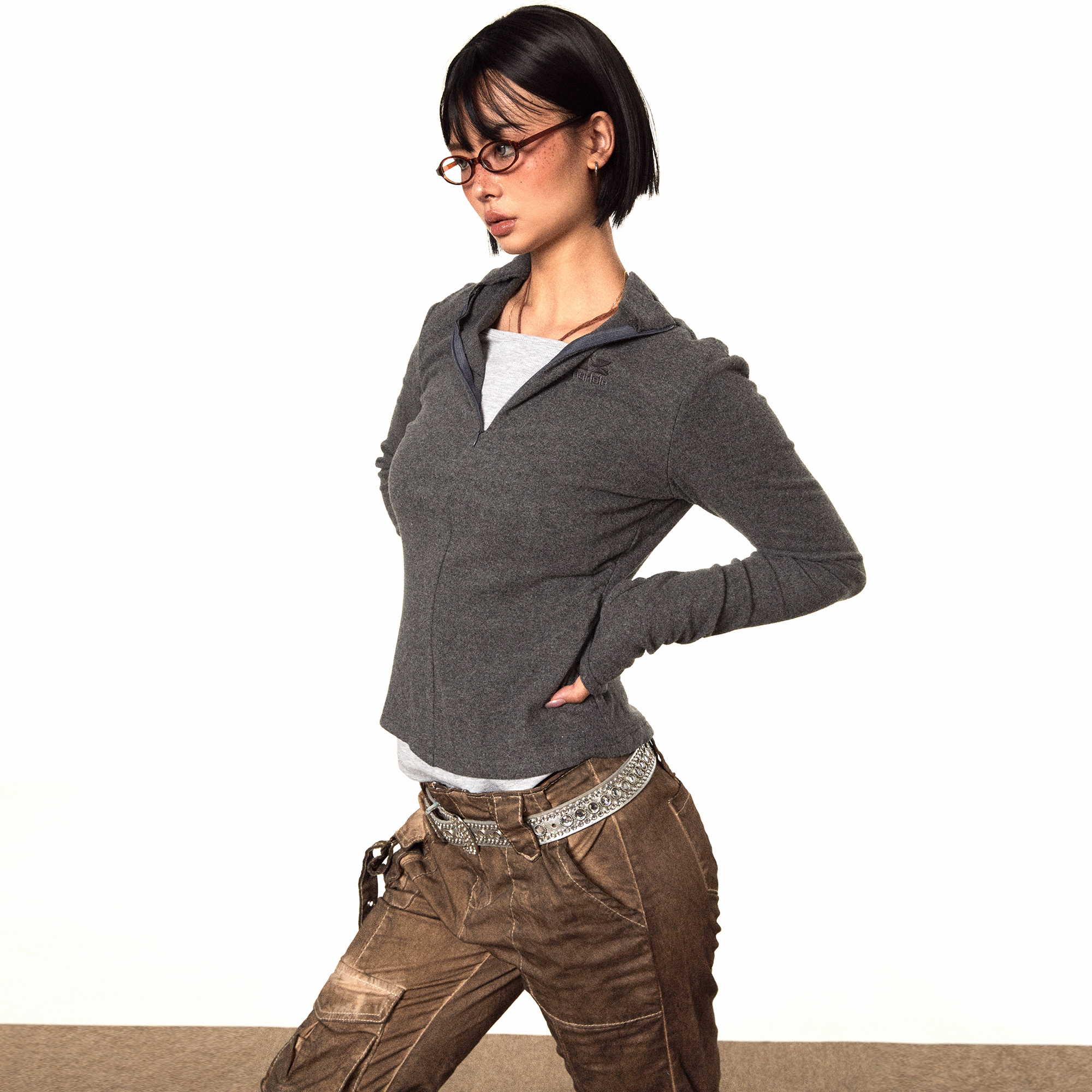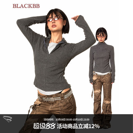 BLACKBB/假两件显腰身紧身针织衫纯色拉链长袖外套女辣妹内搭打底