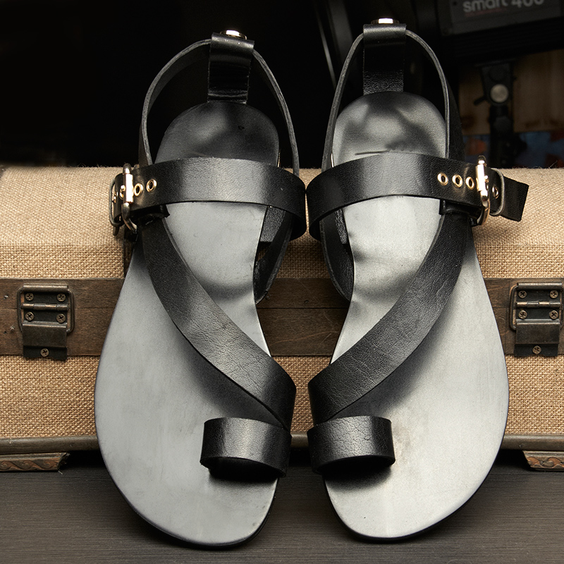维戈夹趾时尚真皮凉鞋夏季镂空男