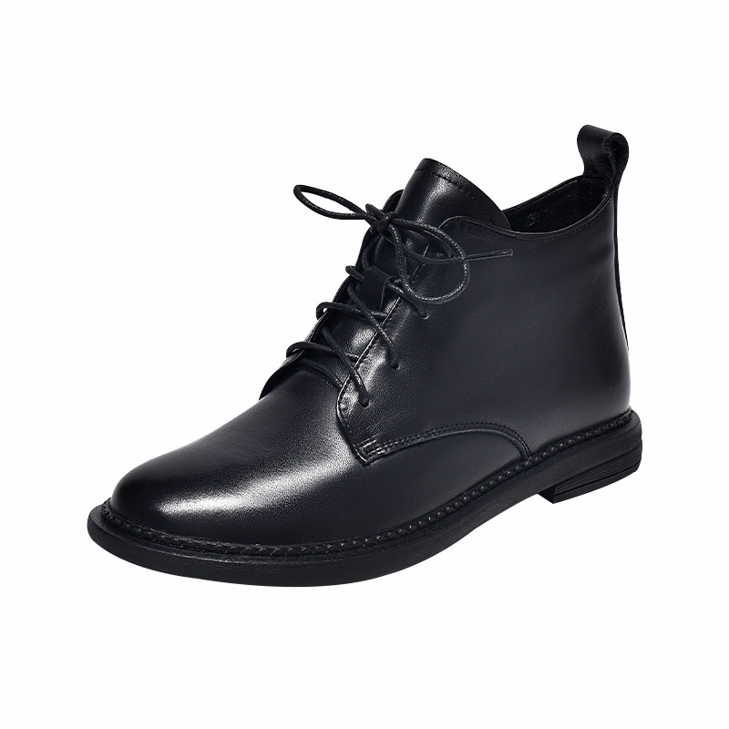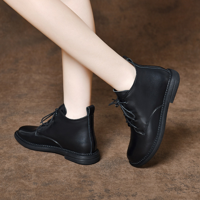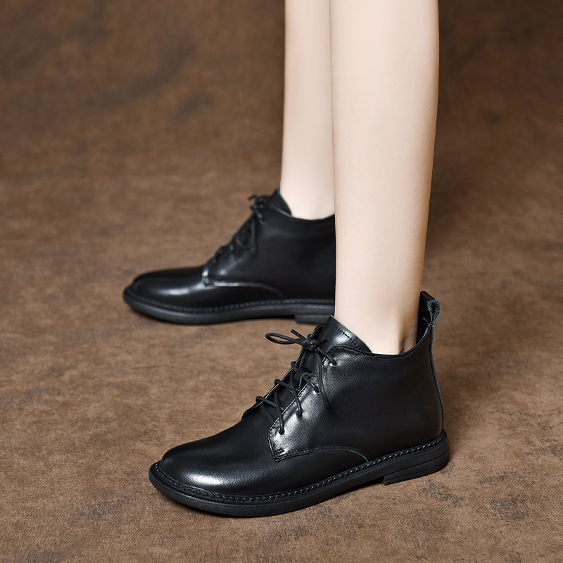 2025年新款软皮系带马丁靴女英伦风平底小短靴秋冬女士软底真皮鞋