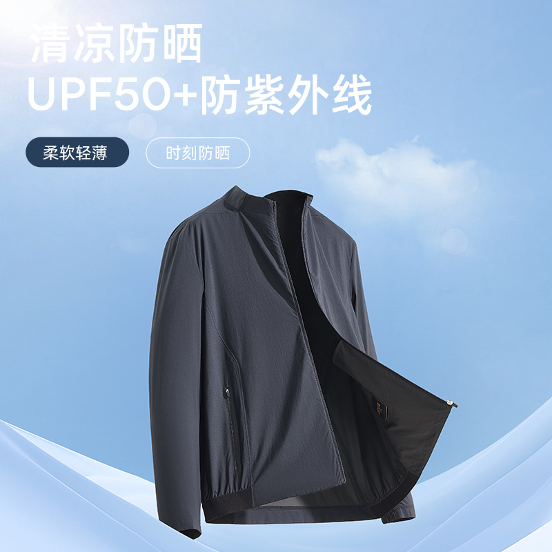 雅戈尔官方25春夏新款男士户外商务休闲防晒轻薄透气立领上衣夹克