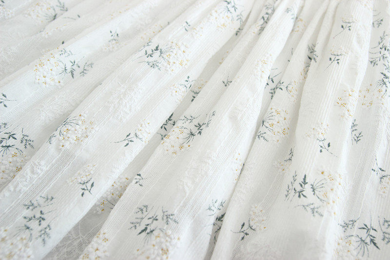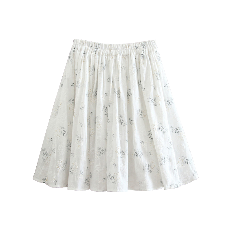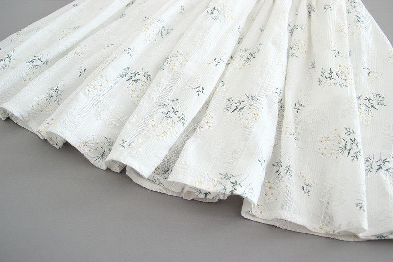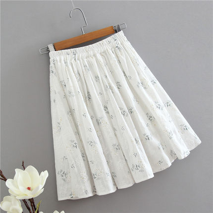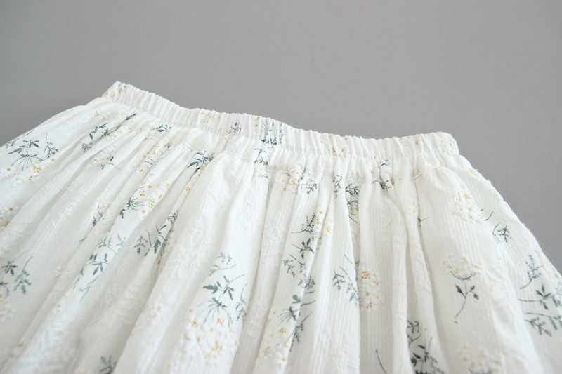 自制2023春夏季棉麻半身短裙子白色印花小碎花提花清新a字裙百褶