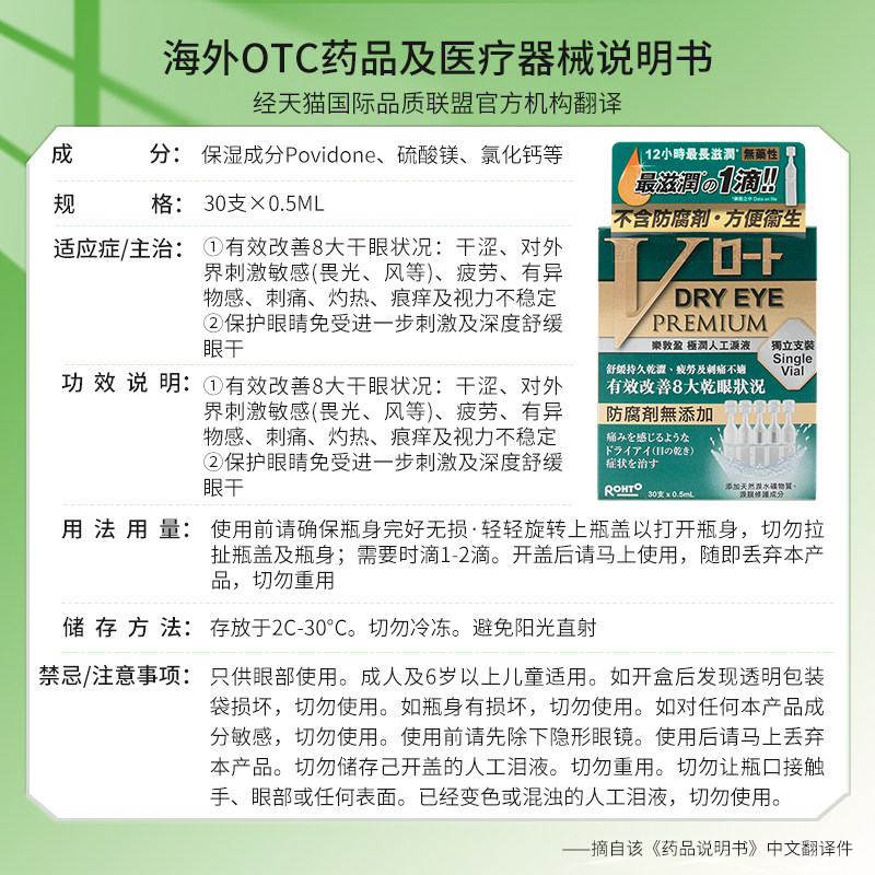 香港版日本乐敦V人工泪液眼疲劳干涩眼干症有异物感眼药水滴眼液