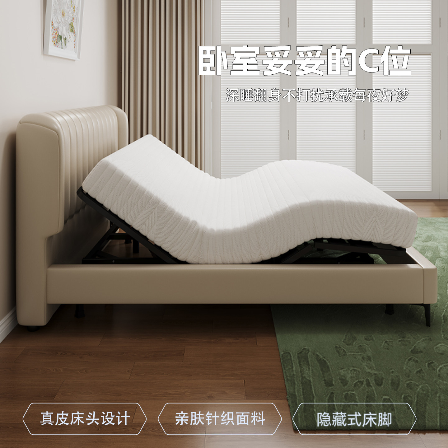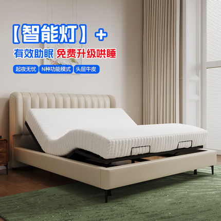 智能电动床夫妻互不打扰双人床家用全自动升降床架钢琴键真皮大床
