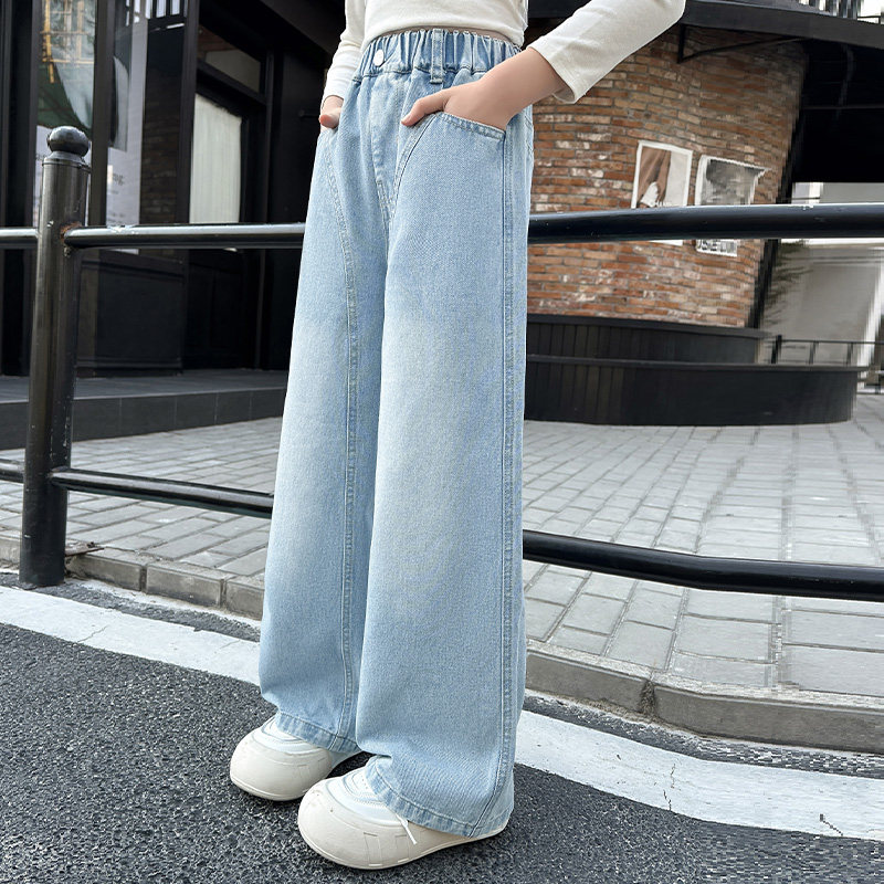 女童裤子夏季薄款休闲直筒牛仔裤