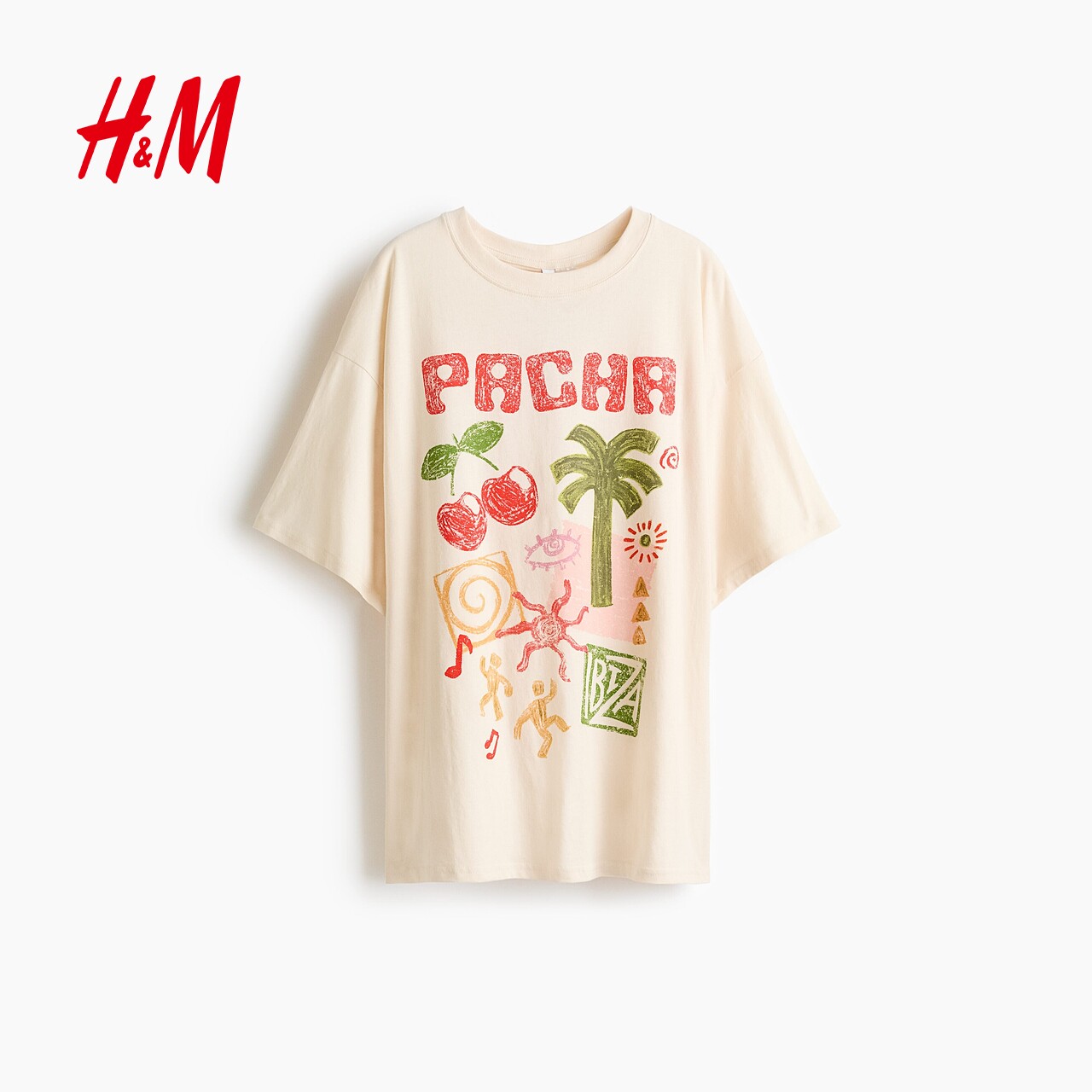 HM女装T恤2026春季新款乐队圆领印花图案大廓形短袖上衣1314589