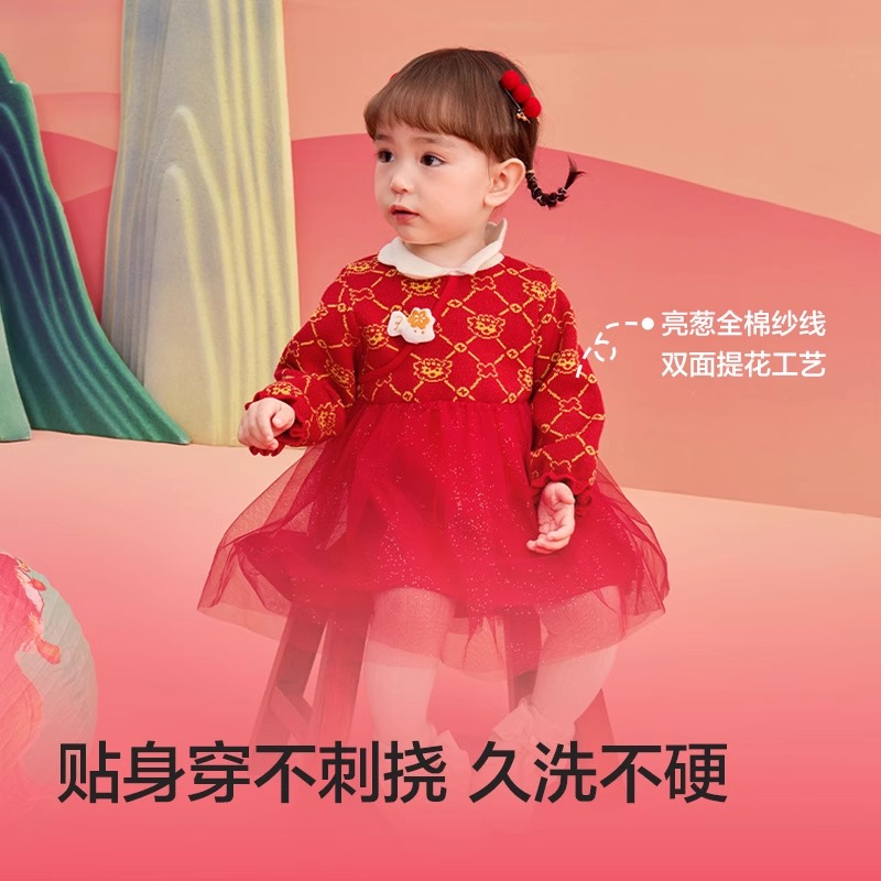 巴拉巴拉婴儿连衣裙公主裙新年红