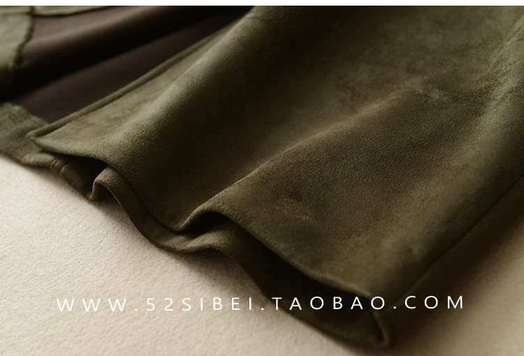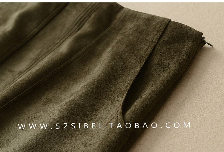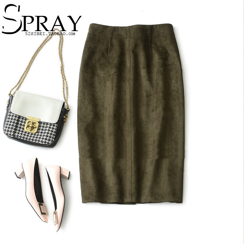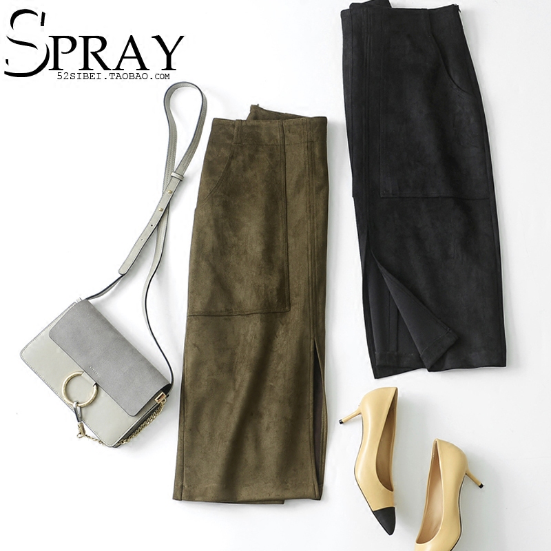 春夏装复合麂皮绒 前开叉 高腰显瘦包臀半身裙中长裙 米虫爱吃米