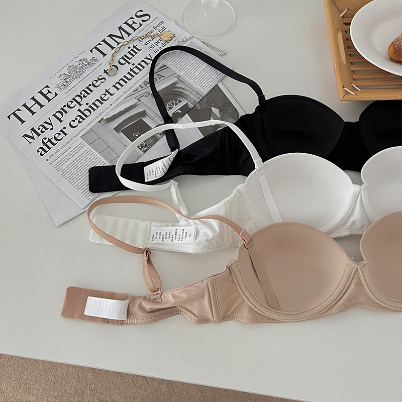半文胸 自留bi入无痕光面内衣女小胸聚拢上薄下厚软钢圈性感胸罩
