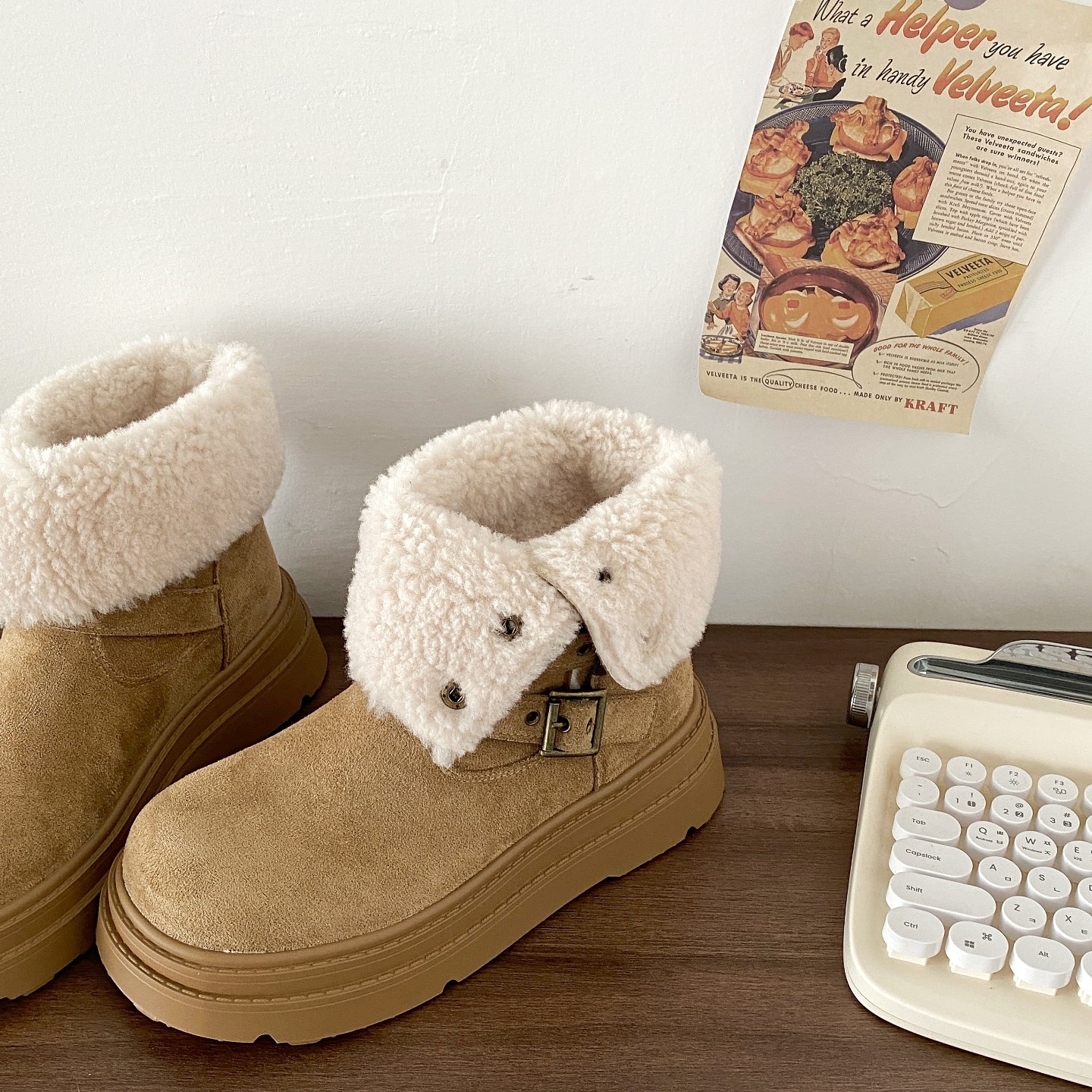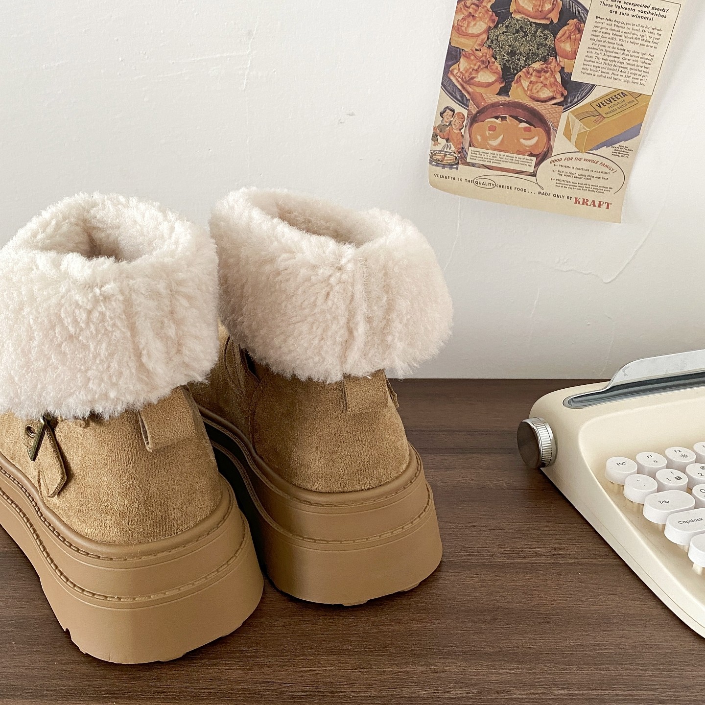 喜叔 两穿厚底增高雪地靴女2025新款冬季加绒加厚短靴子防滑棉鞋