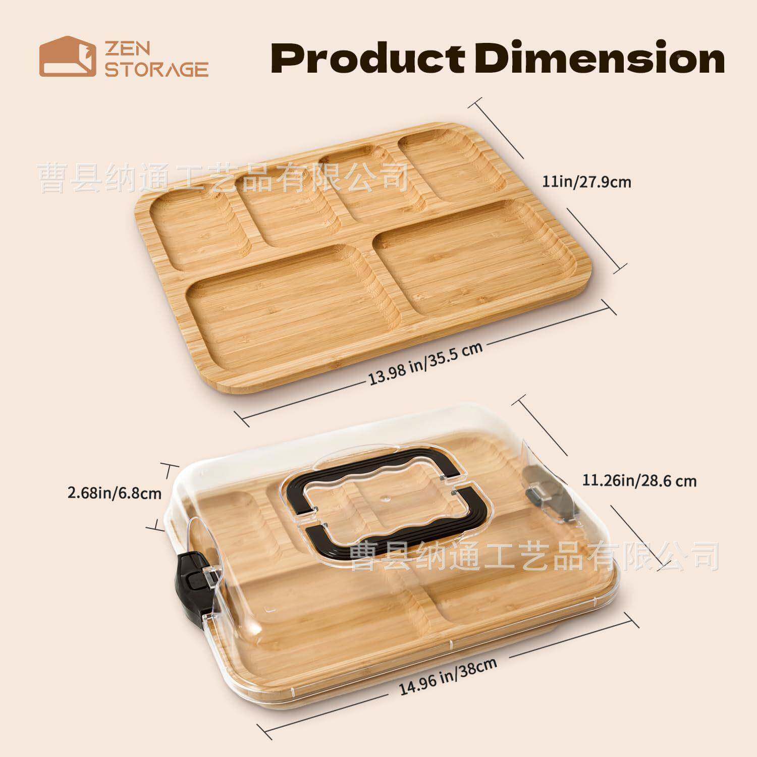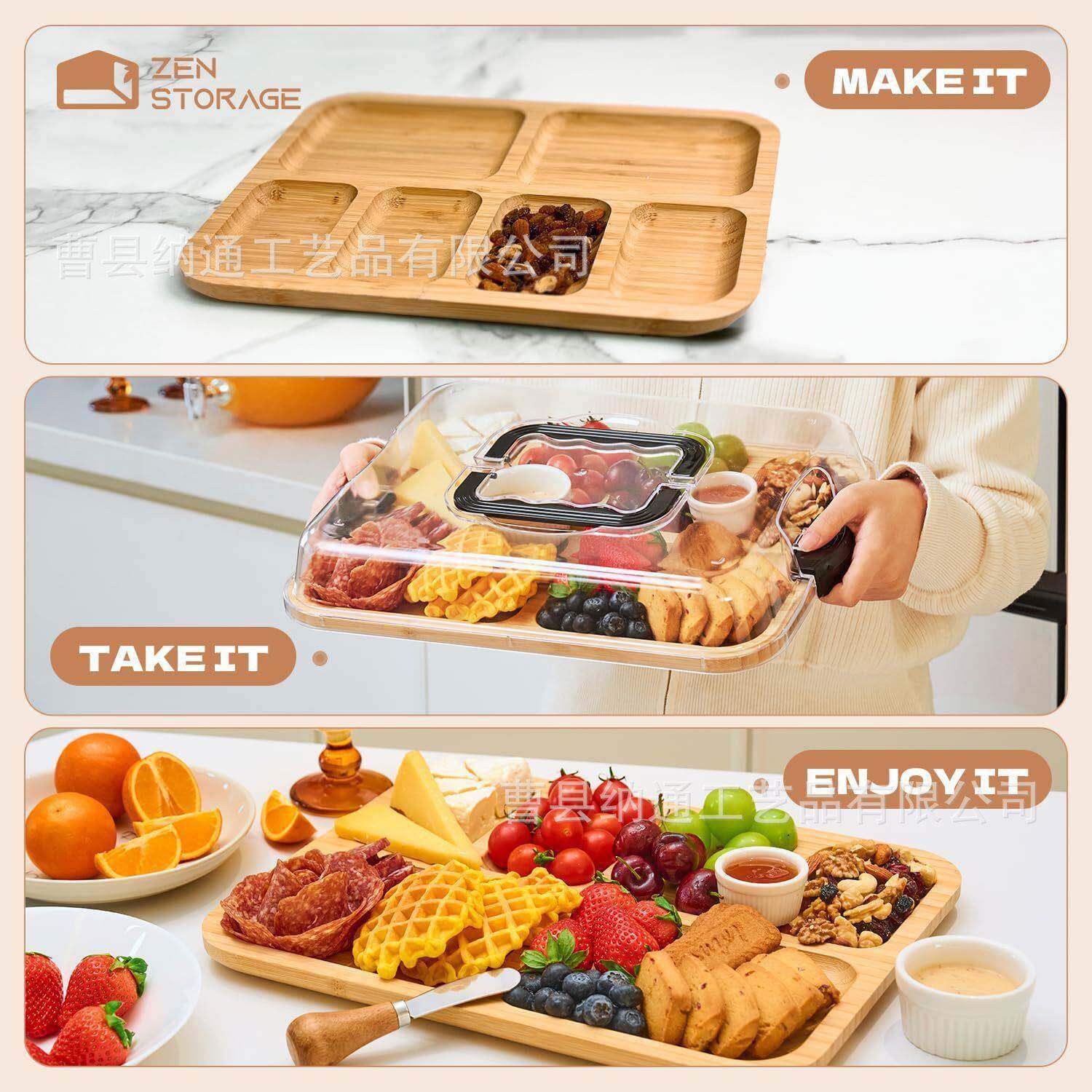 现货木制盖熟食餐创意派对点带托盘盘心厨房分格水果盘牛排木质托