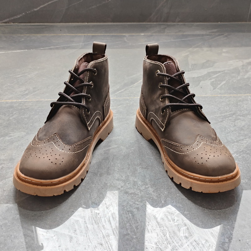 牛皮布洛克男靴马丁靴真皮雕花休闲女靴复古潮流短靴英伦工装靴子