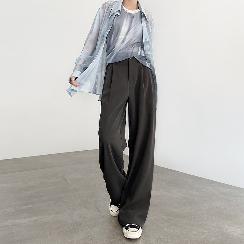 深灰色西装裤女2025新款高腰垂感梨型身材宽松休闲窄版直筒阔腿裤