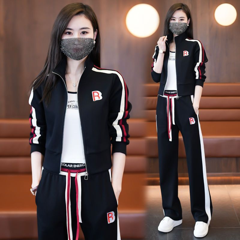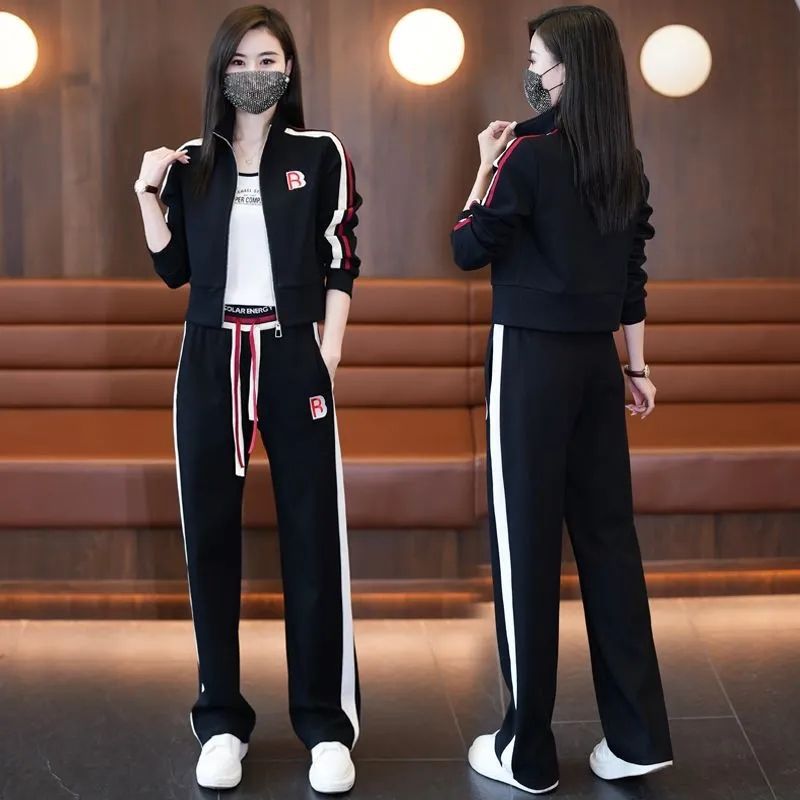 休闲运动套装女2025春秋新款时尚减龄气质立领外套阔腿卫裤两件套