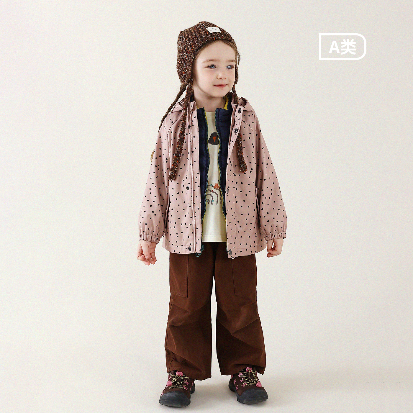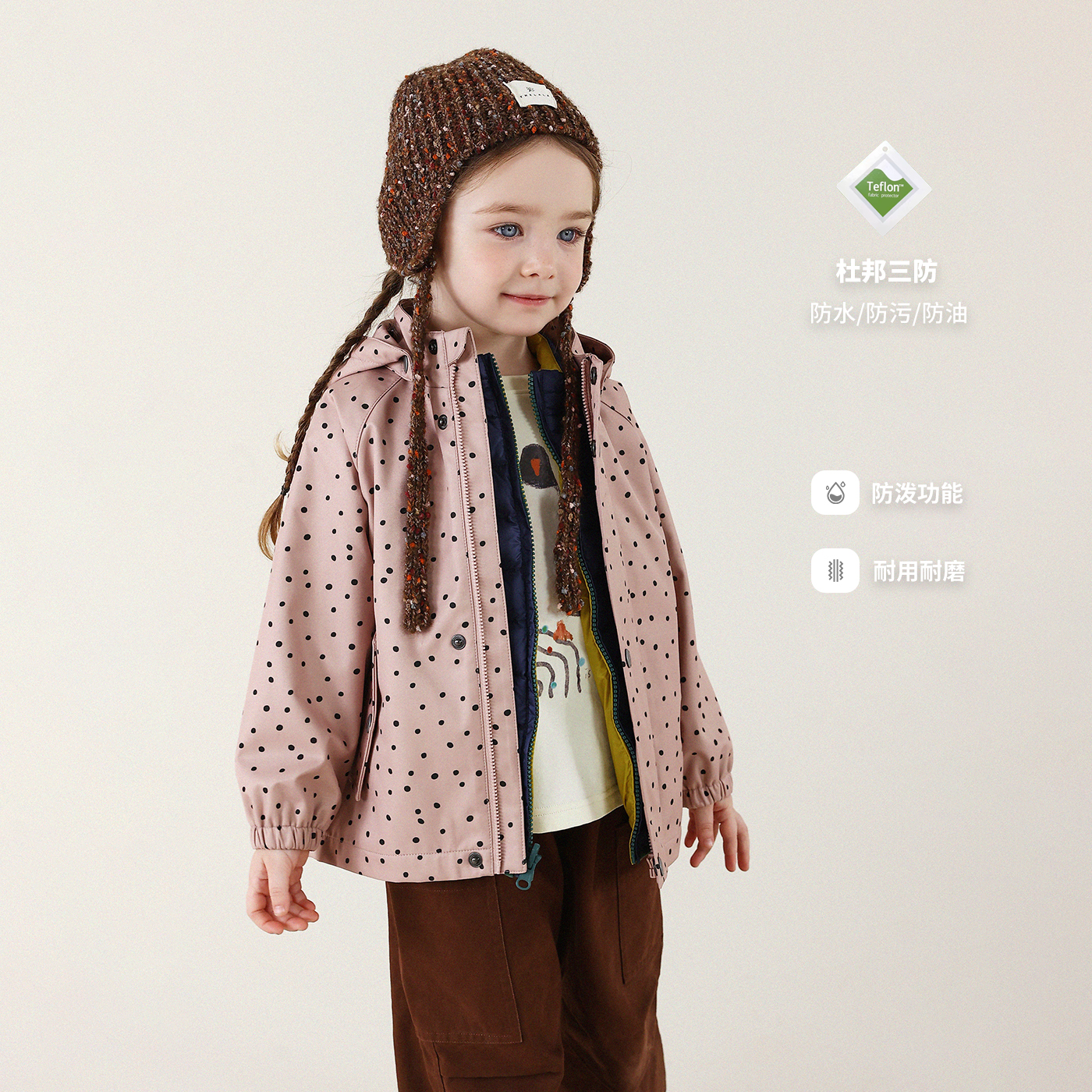 允儿妈女童秋季新款杜邦三防连帽冲锋衣宝宝小众波点防风服外套潮