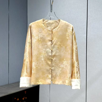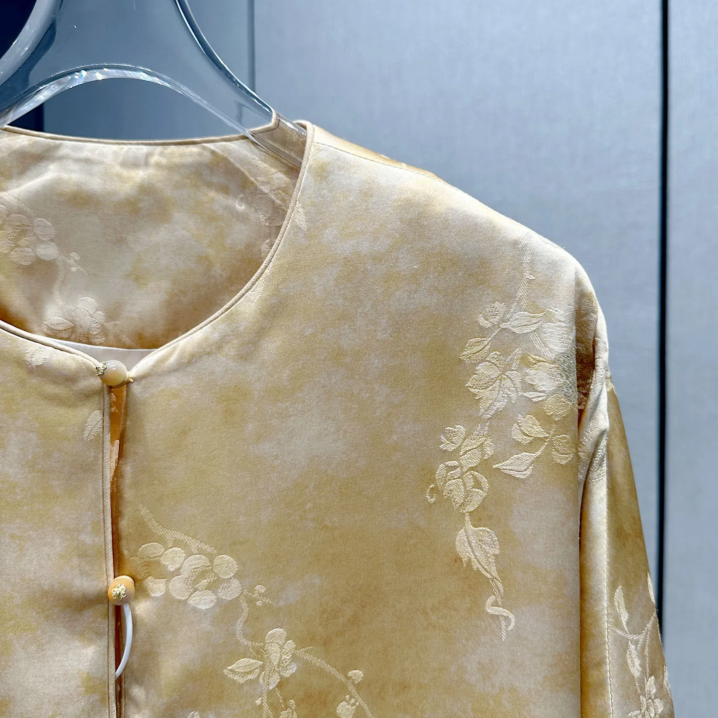 复古唐装新中式上衣女深圳南油2025年秋季新款卷边袖拼接提花外套