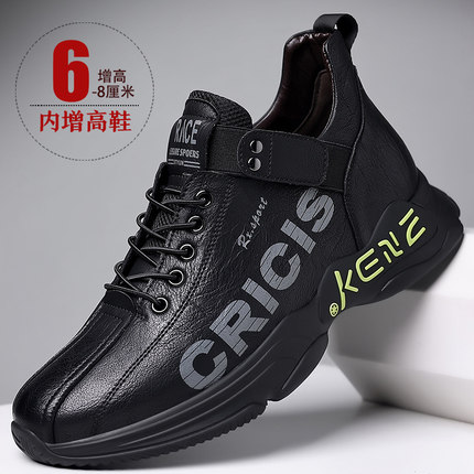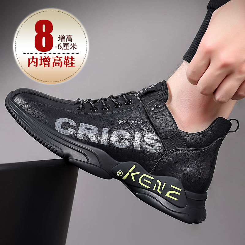 内增高男鞋休闲运动鞋子男士增高皮鞋真皮韩版潮百搭冬季加绒保暖
