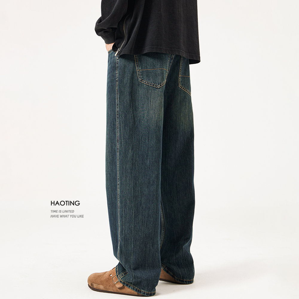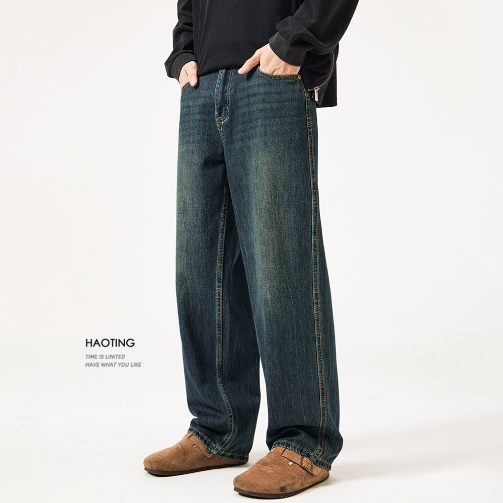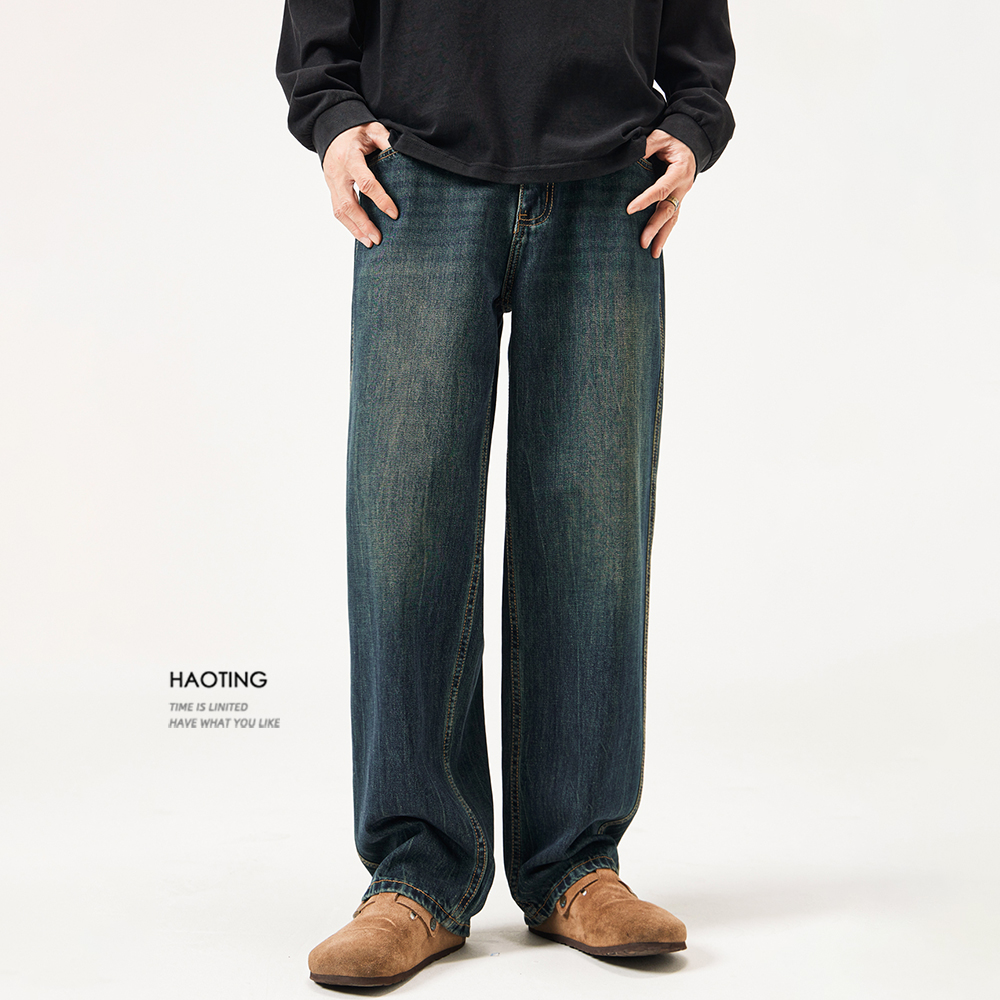 豪霆.复古水洗宽松直筒cleanfit牛仔裤男士春秋百搭休闲阔腿长裤