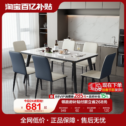全友家居现代轻奢岩板餐桌椅组合客厅家用可折叠变圆形多功能饭桌