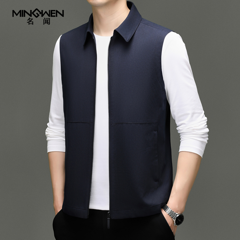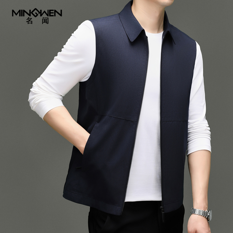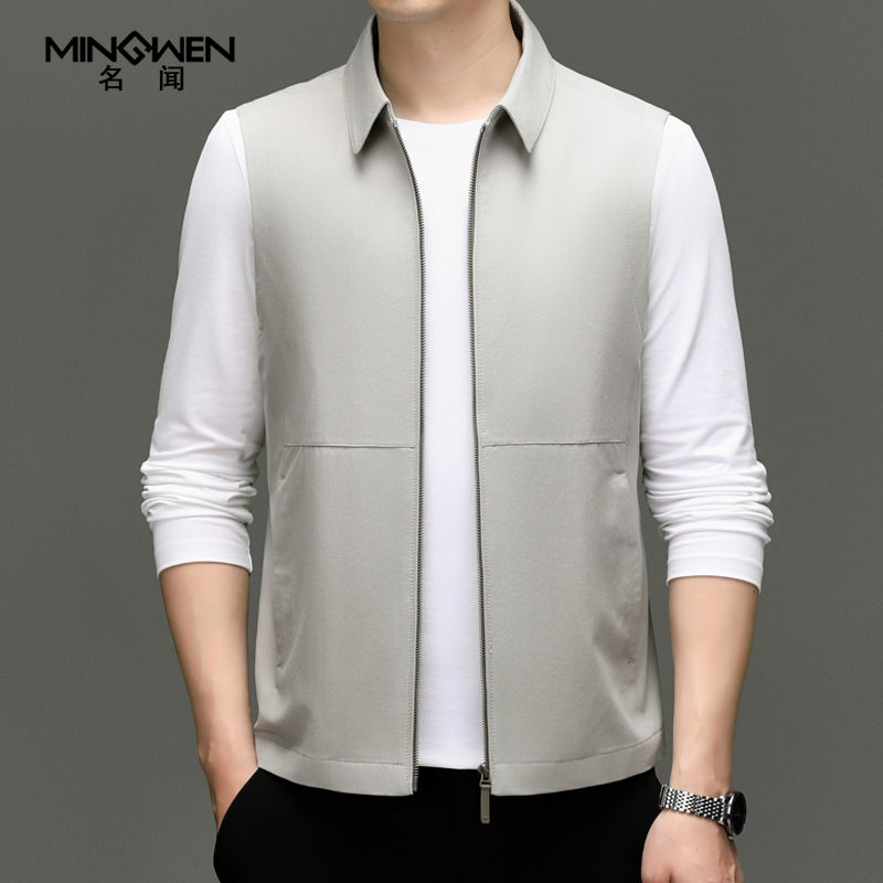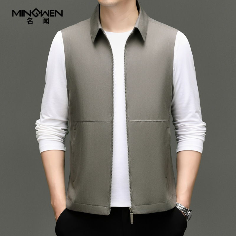 翻领纯棉马甲男春秋薄款时尚休闲高级感拉链开衫无袖背心马夹外套