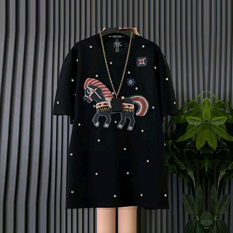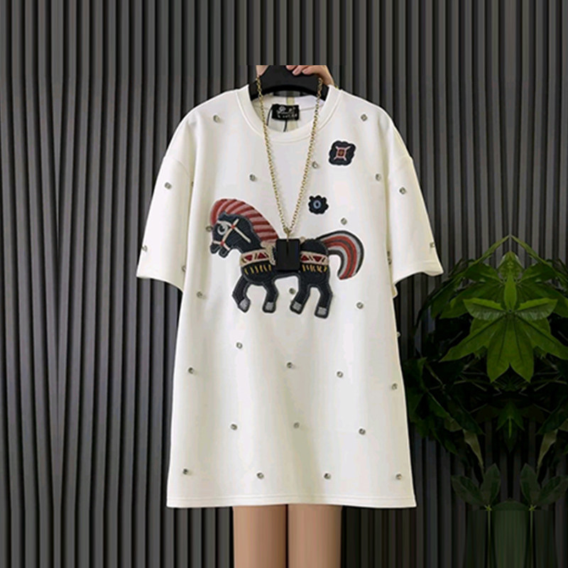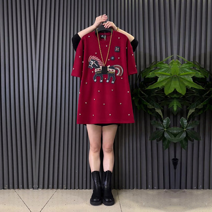 胖妹妹卡通图案短袖亮钻上衣韩版大码女装新年款胖妹妹本命年小衫
