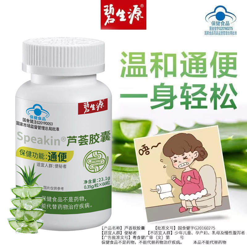 碧生源芦荟胶囊66粒男女便秘者润肠通便排宿便常润非茶官方