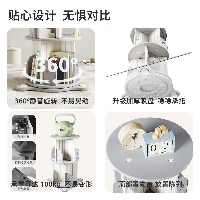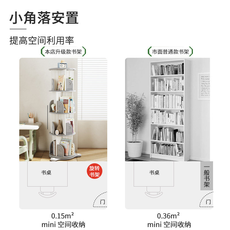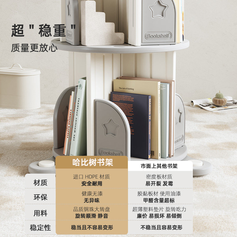 哈比树旋转书架360度落地简约儿童宝宝收纳绘本架置物架家用书柜