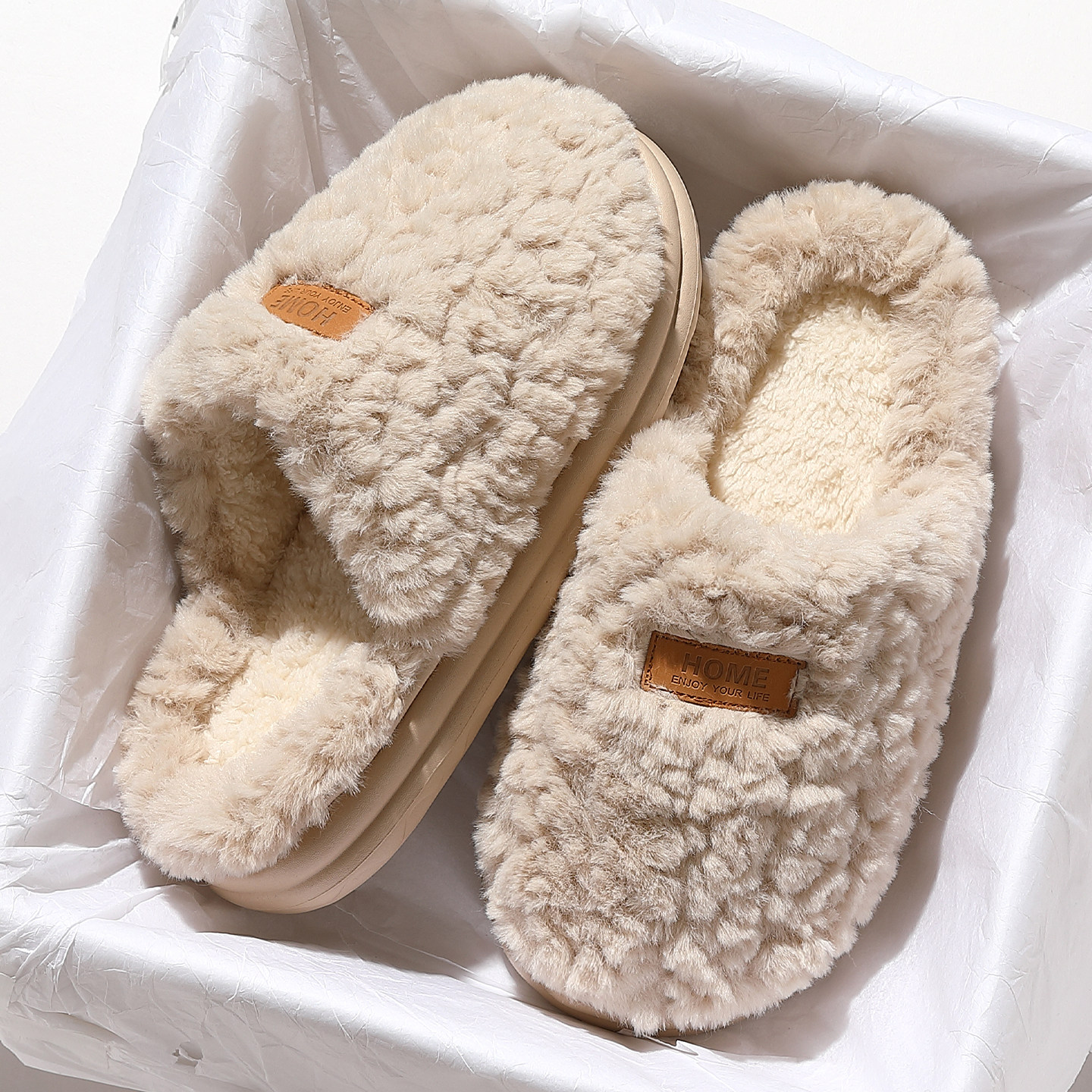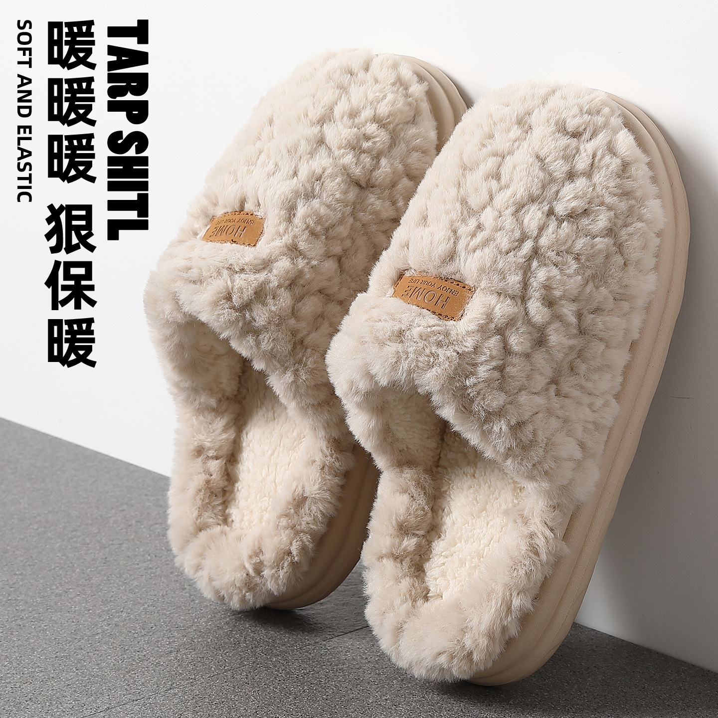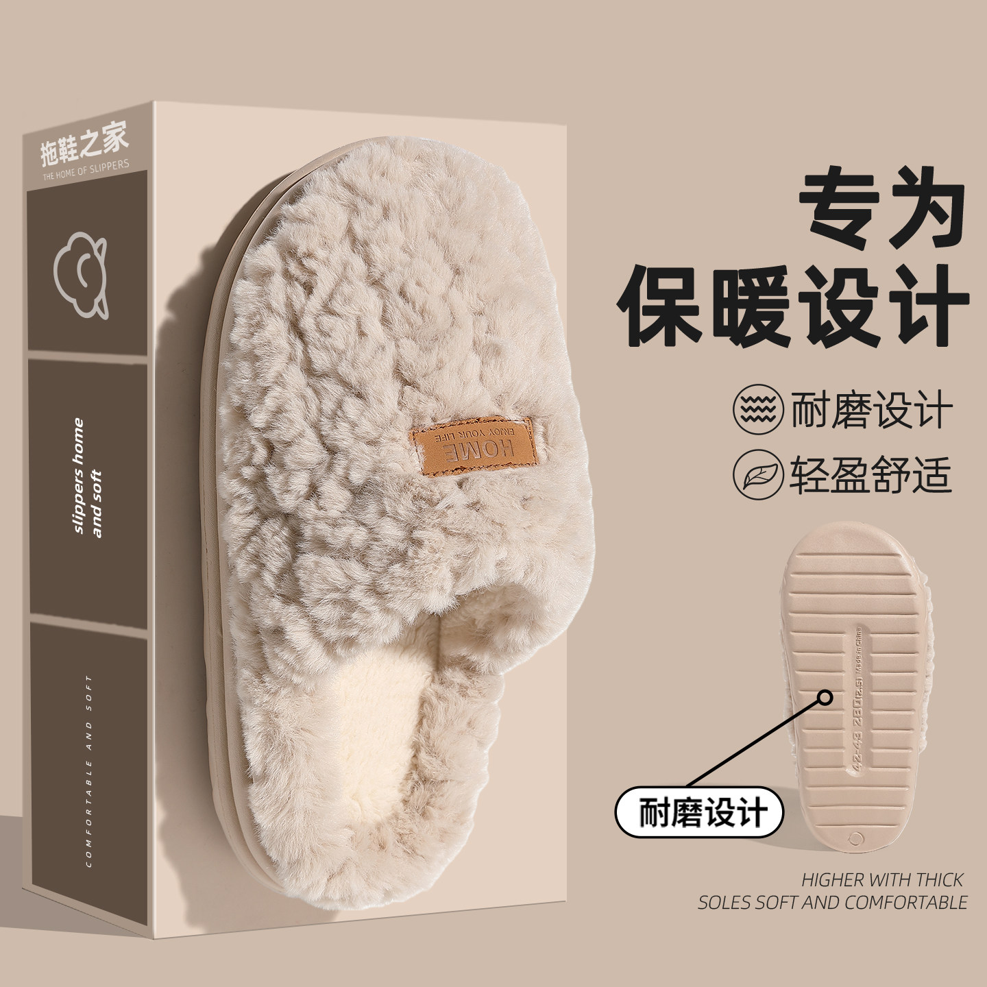 买一送一棉拖鞋女款冬季室内家居情侣一对防滑厚底毛绒保暖拖鞋男